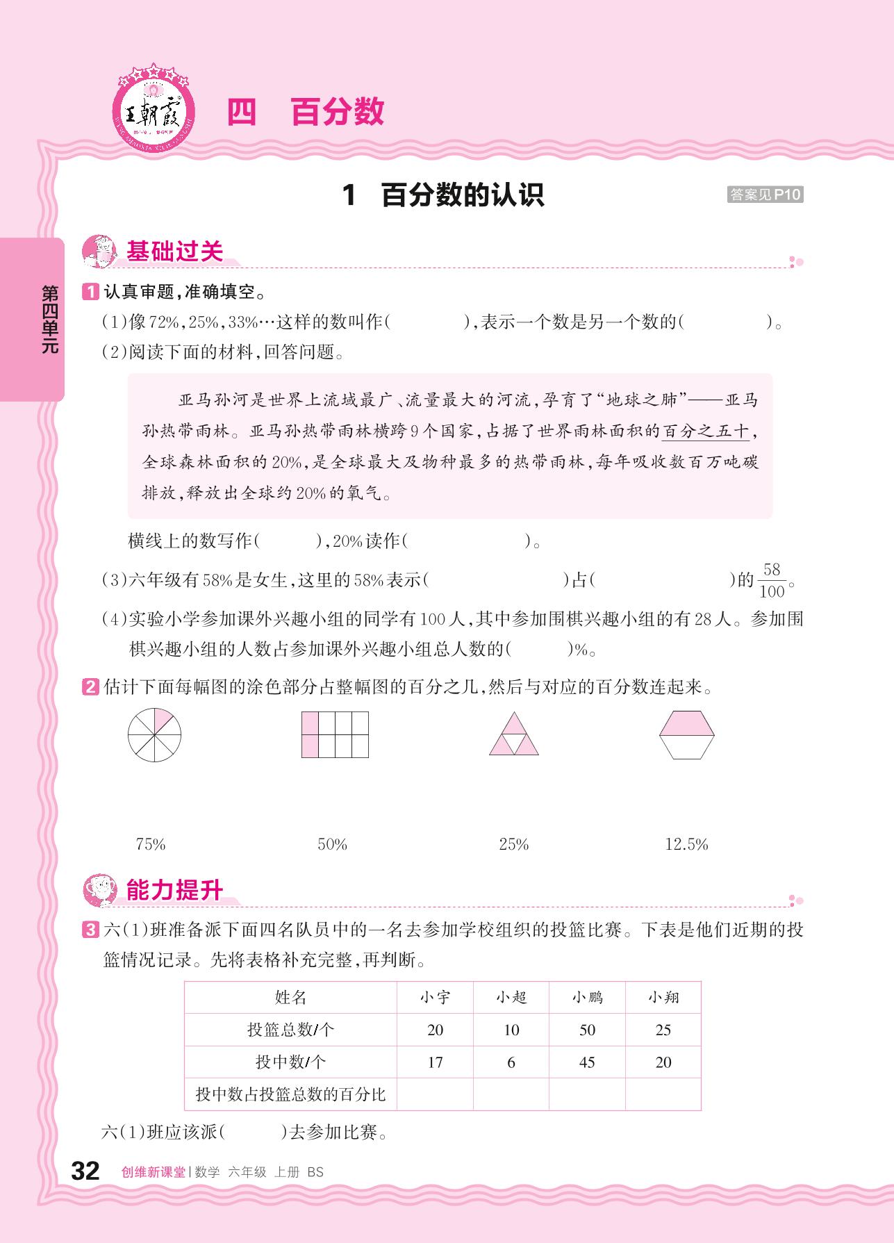 2024秋上册六年级数学北师版 第四单元 百分数——1. 百分数的认识