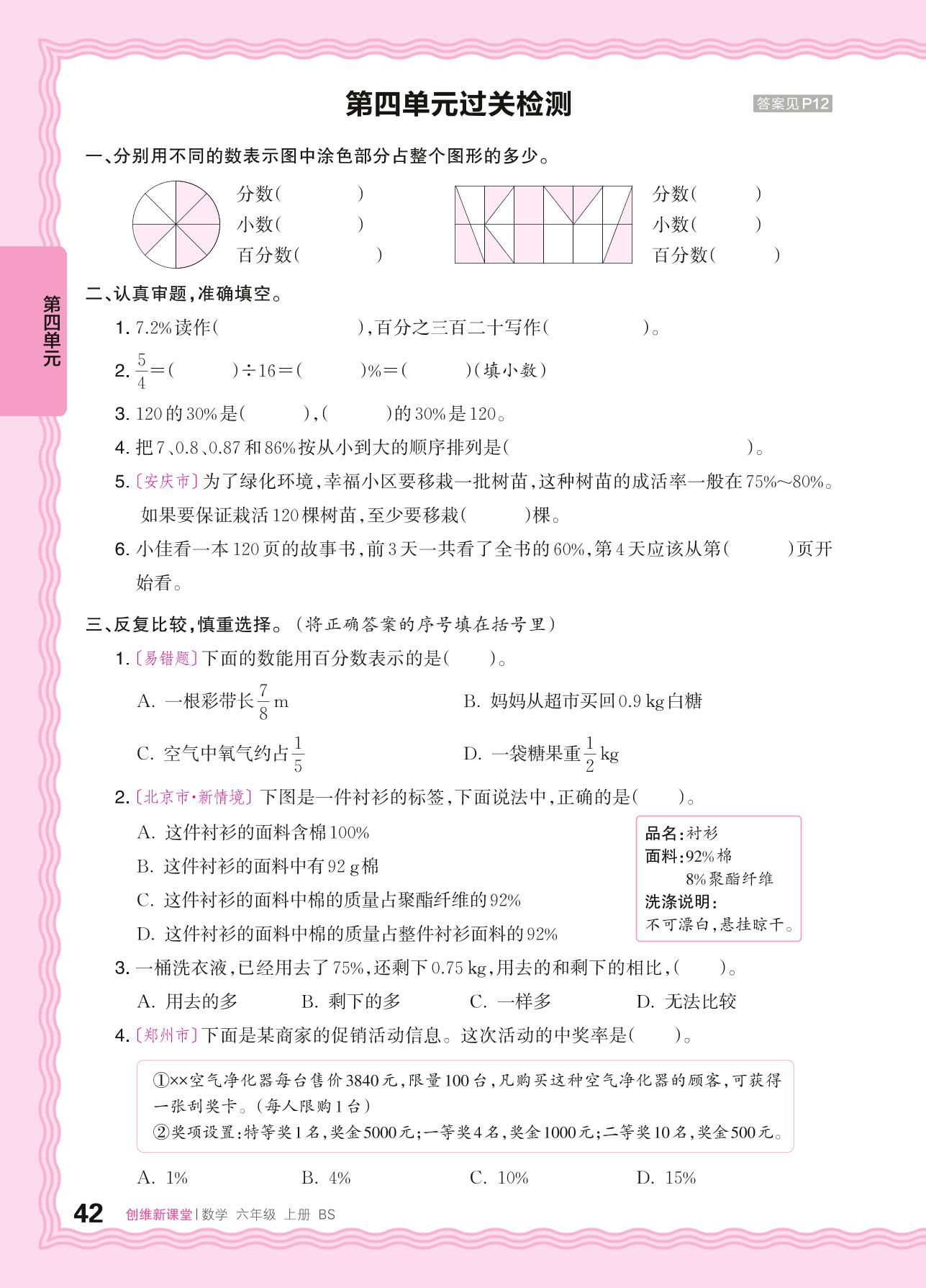 六年级数学北师版上册单元卷