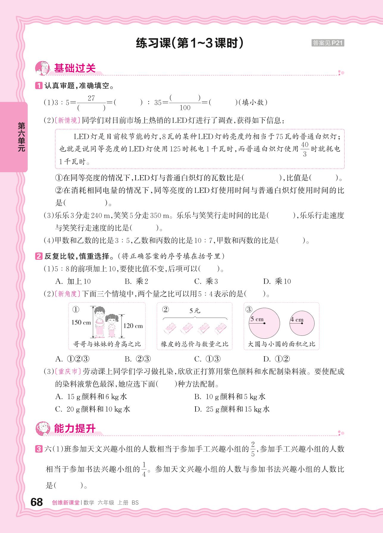 2024秋上册六年级数学北师版 第六单元 比的认识——生活中的比、 比的化简练习课