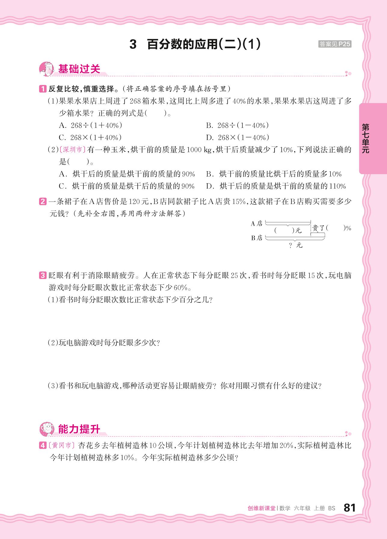 2024秋上册六年级数学北师版 第七单元 百分数的应用——3. 百分数的应用(二)(1)