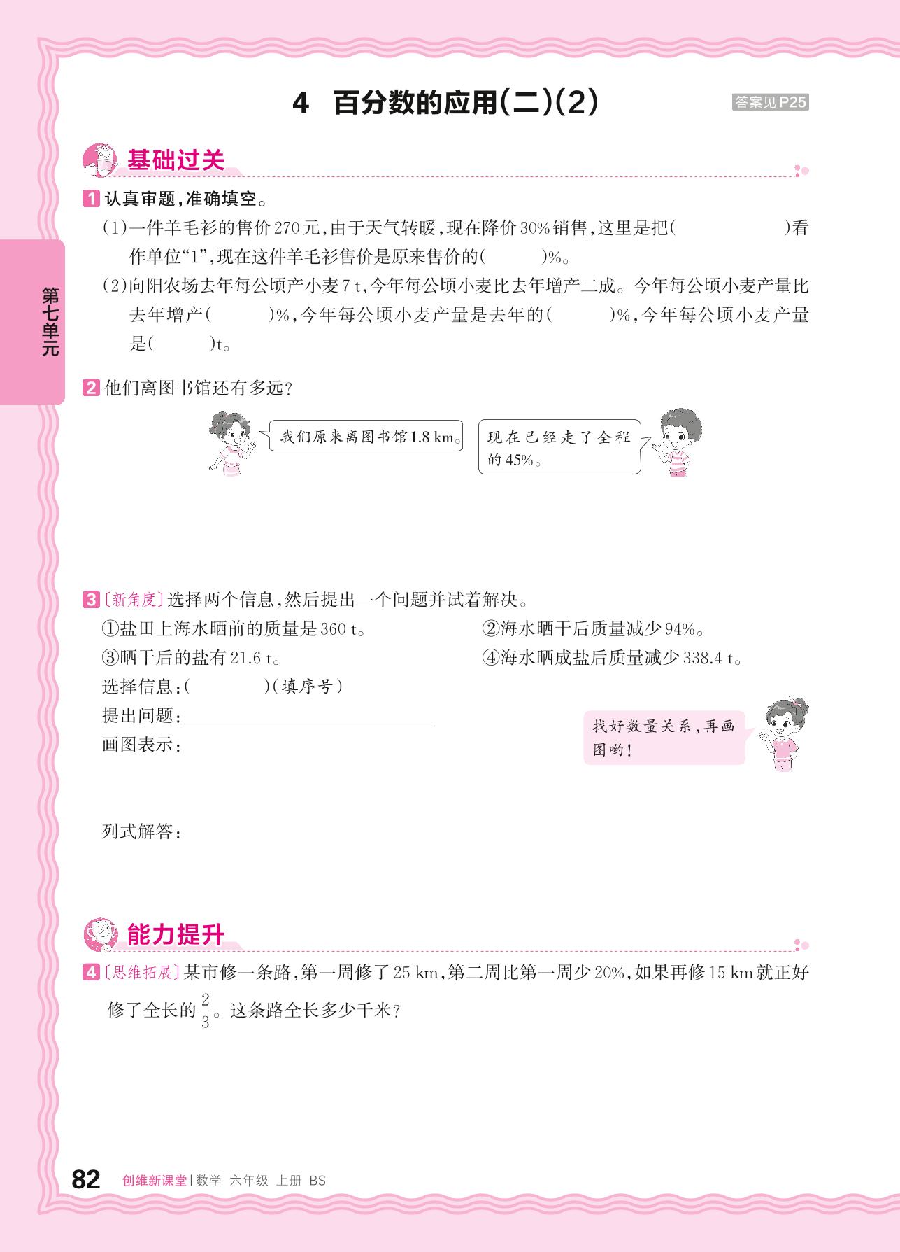 2024秋上册六年级数学北师版 第七单元 百分数的应用——4. 百分数的应用(二)(2)