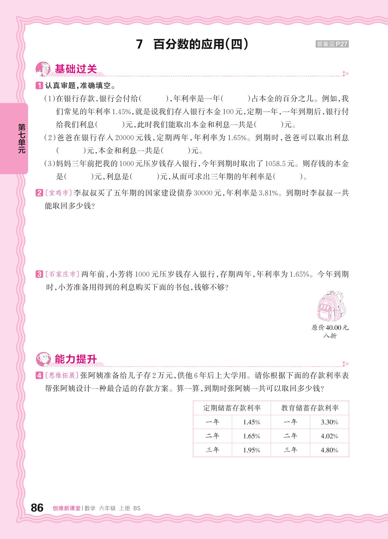 2024秋上册六年级数学北师版 第七单元 百分数的应用——7. 百分数的应用(四)