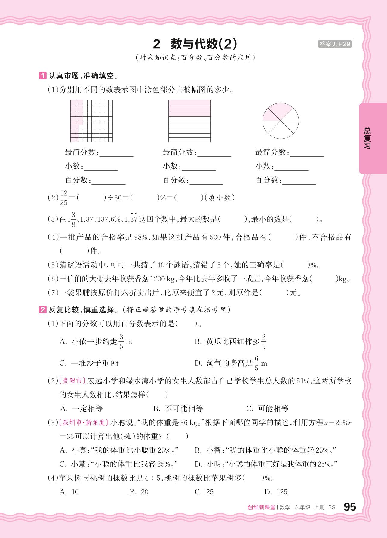 2024秋上册六年级数学北师版 总复习——2. 数与代数(2)