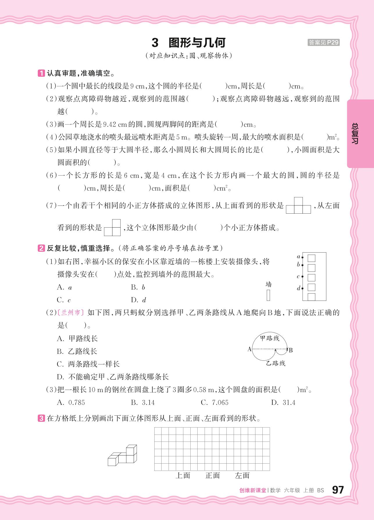 2024秋上册六年级数学北师版 总复习——3. 图形与几何
