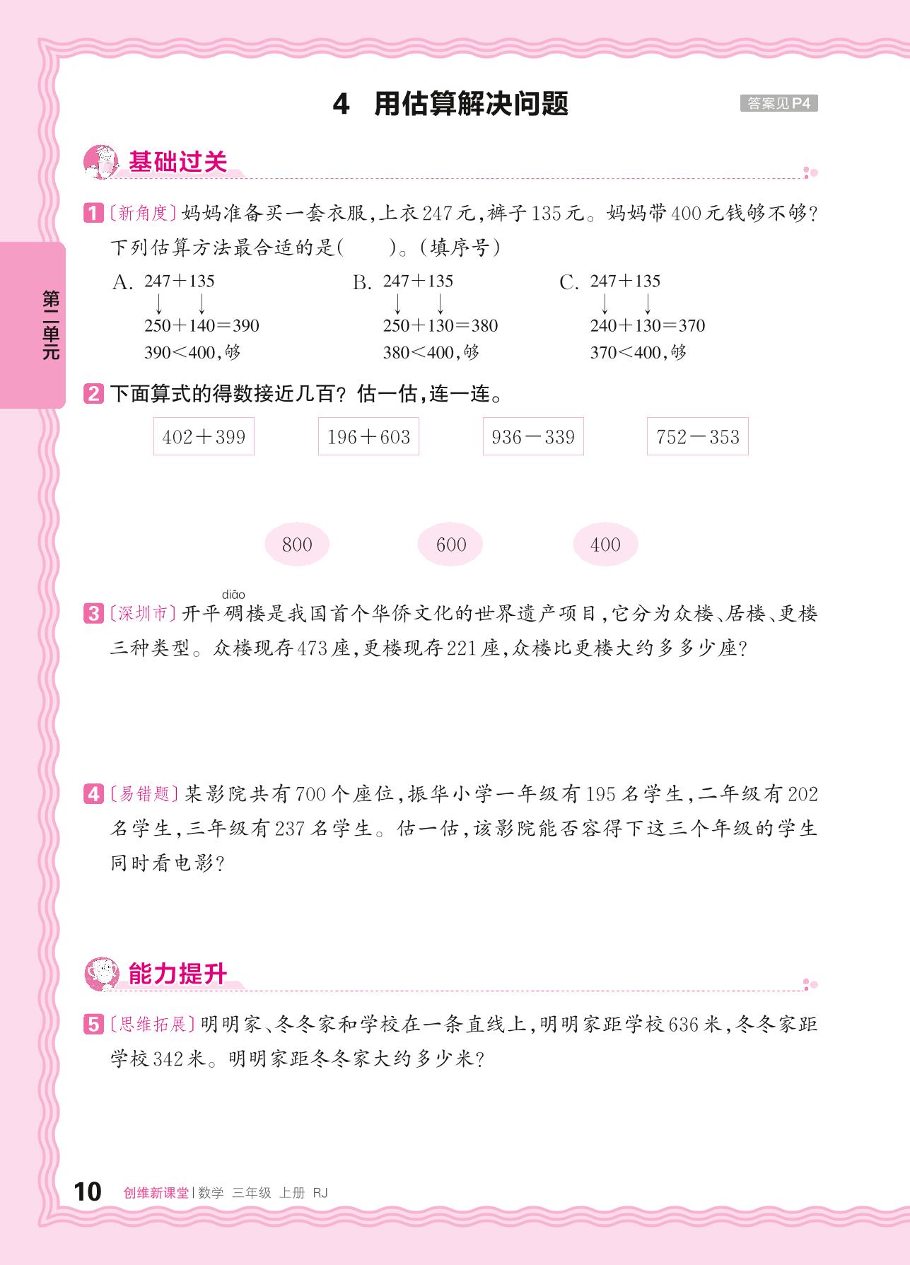 2024秋上册三年级数学人教版 第二单元 万以内的加法和减法(一) ——4. 用估算解决问题