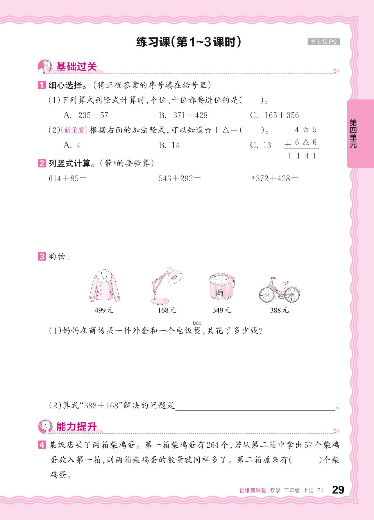 2024秋上册三年级数学人教版 第四单元 万以内的加法和减法(二)——加法练习课