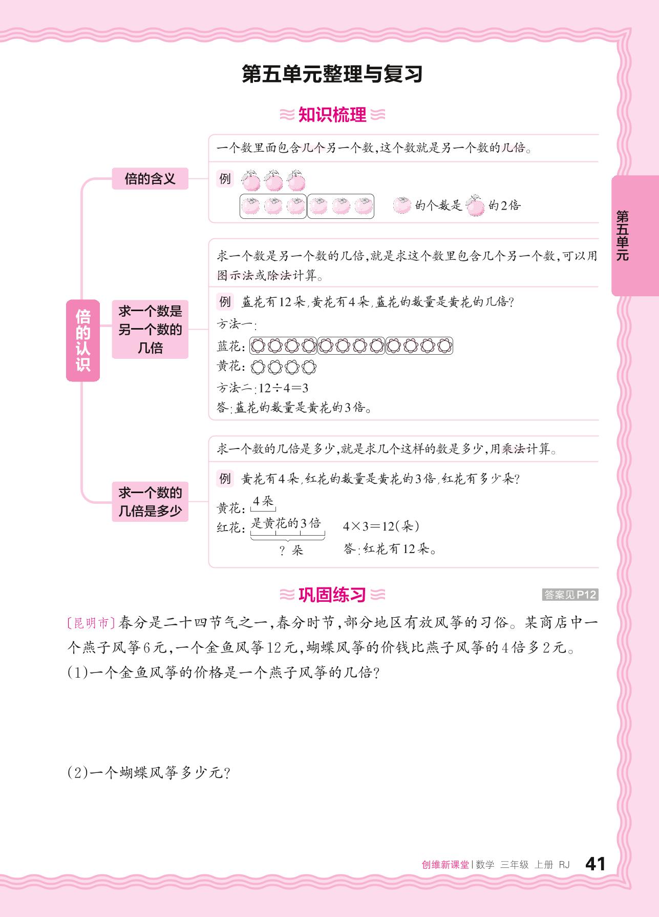 2024秋上册三年级数学人教版 第五单元整理与复习