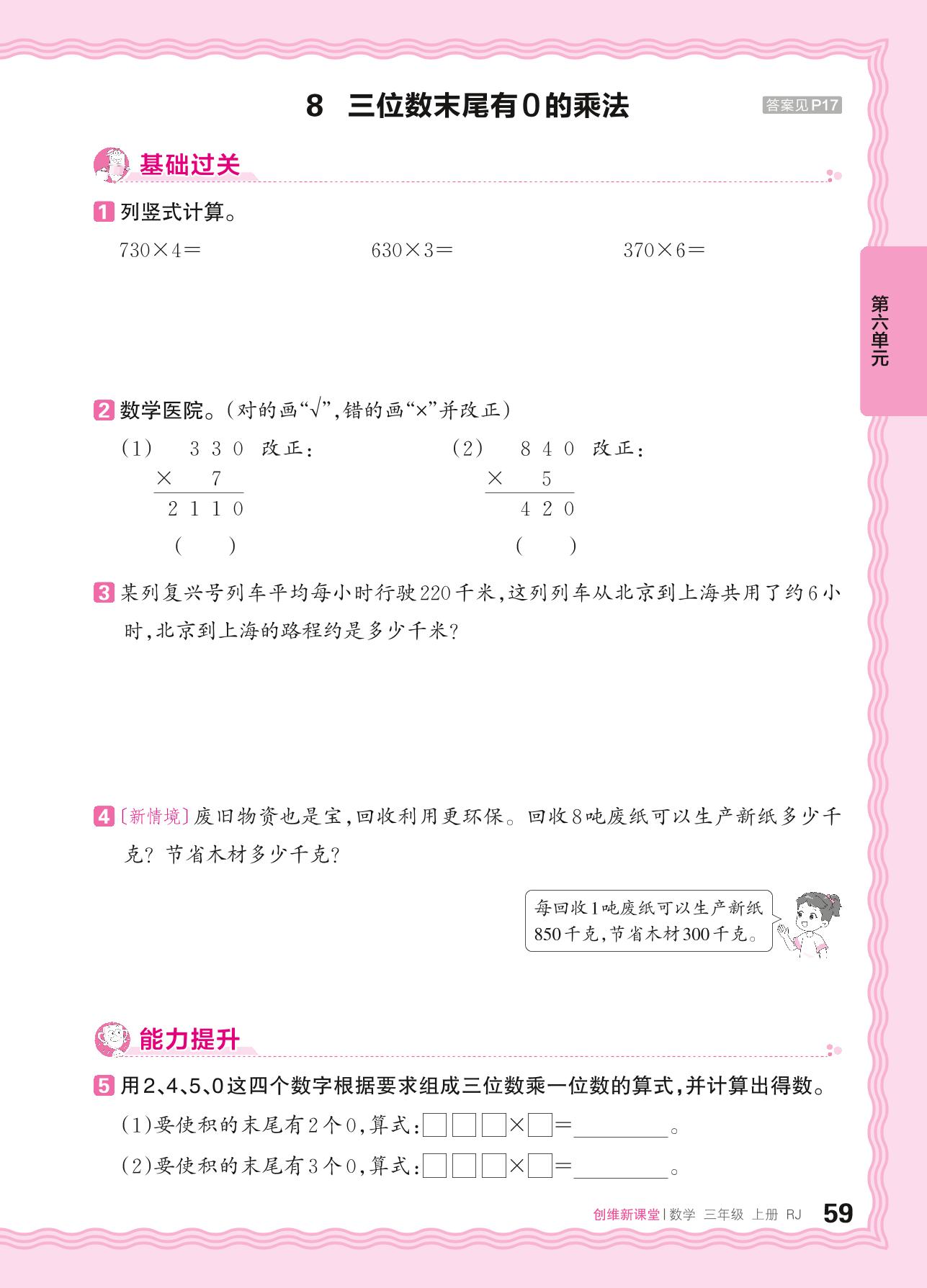 2024秋上册三年级数学人教版 第六单元 多位数乘一位数——8. 三位数末尾有0的乘法