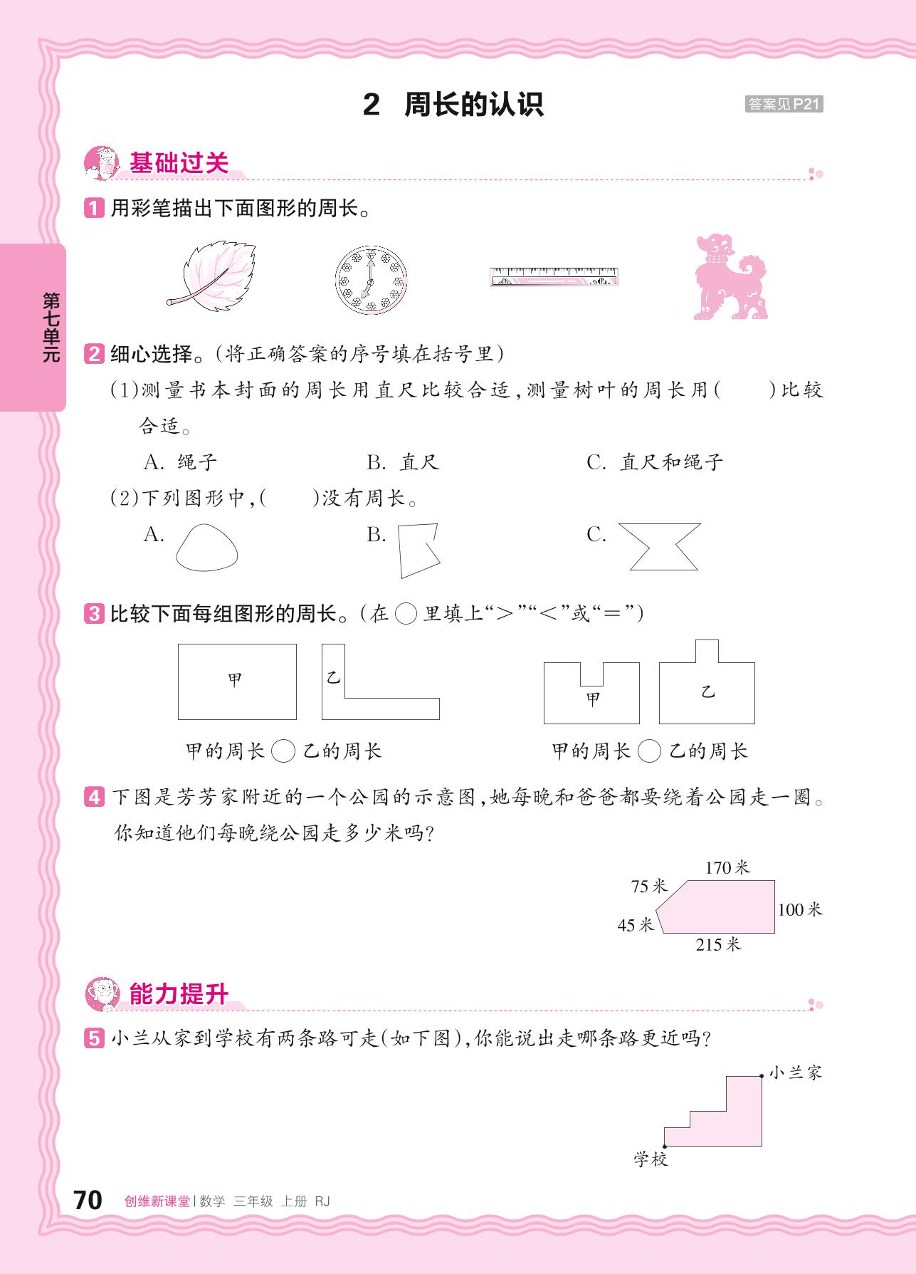 2024秋上册三年级数学人教版 第七单元 长方形和正方形——2. 周长的认识