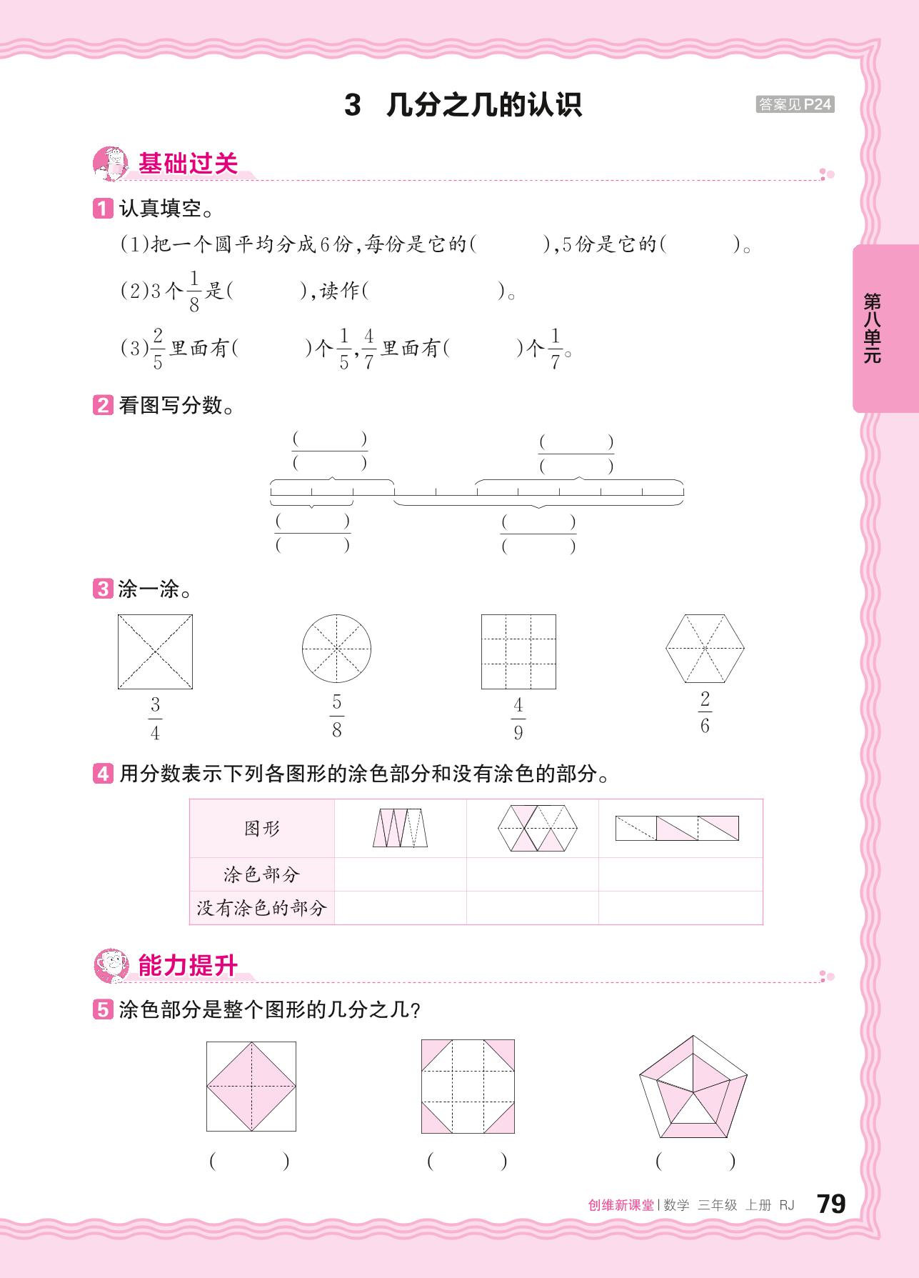 2024秋上册三年级数学人教版 第八单元 分数的初步认识——3. 几分之几的认识