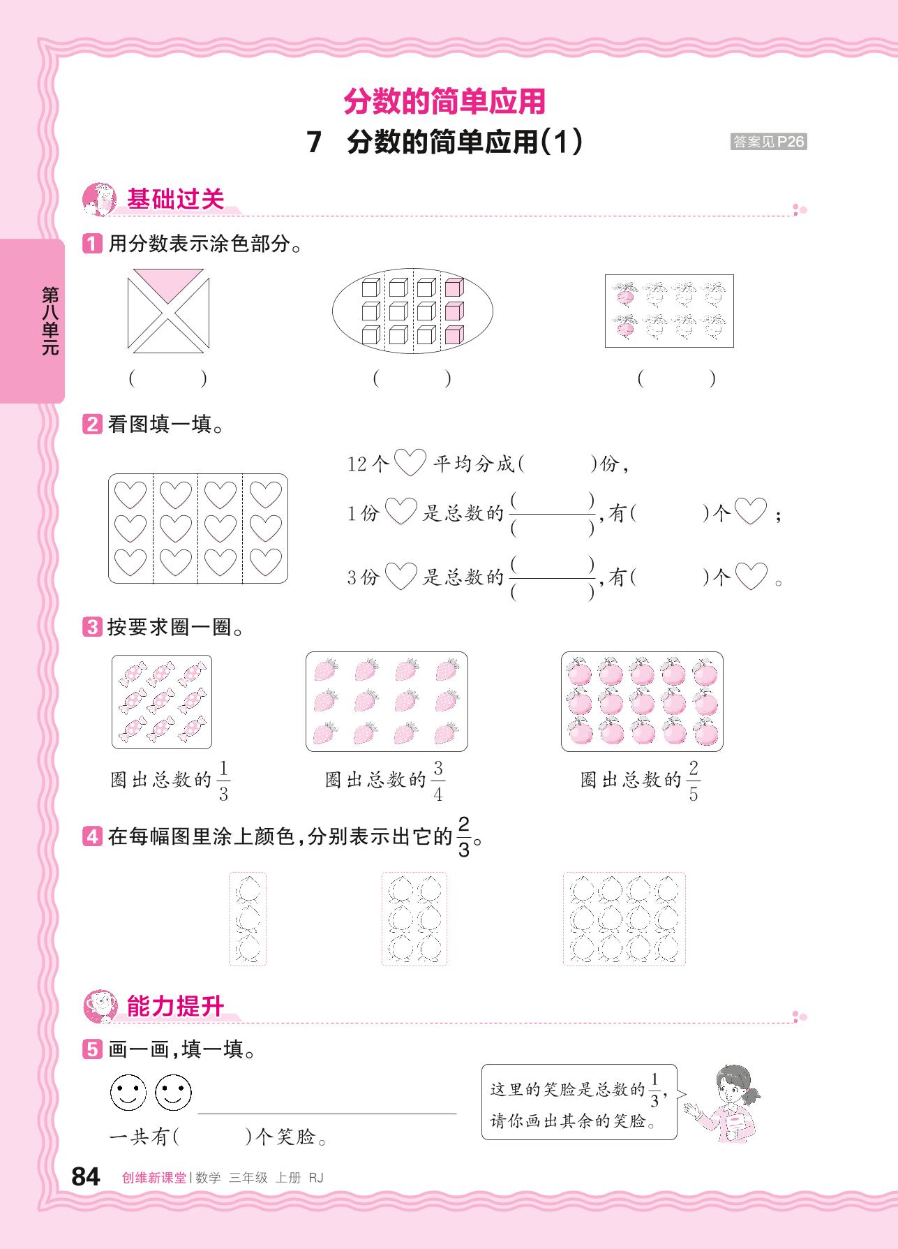 2024秋上册三年级数学人教版 第八单元 分数的初步认识——7. 分数的简单应用(1)