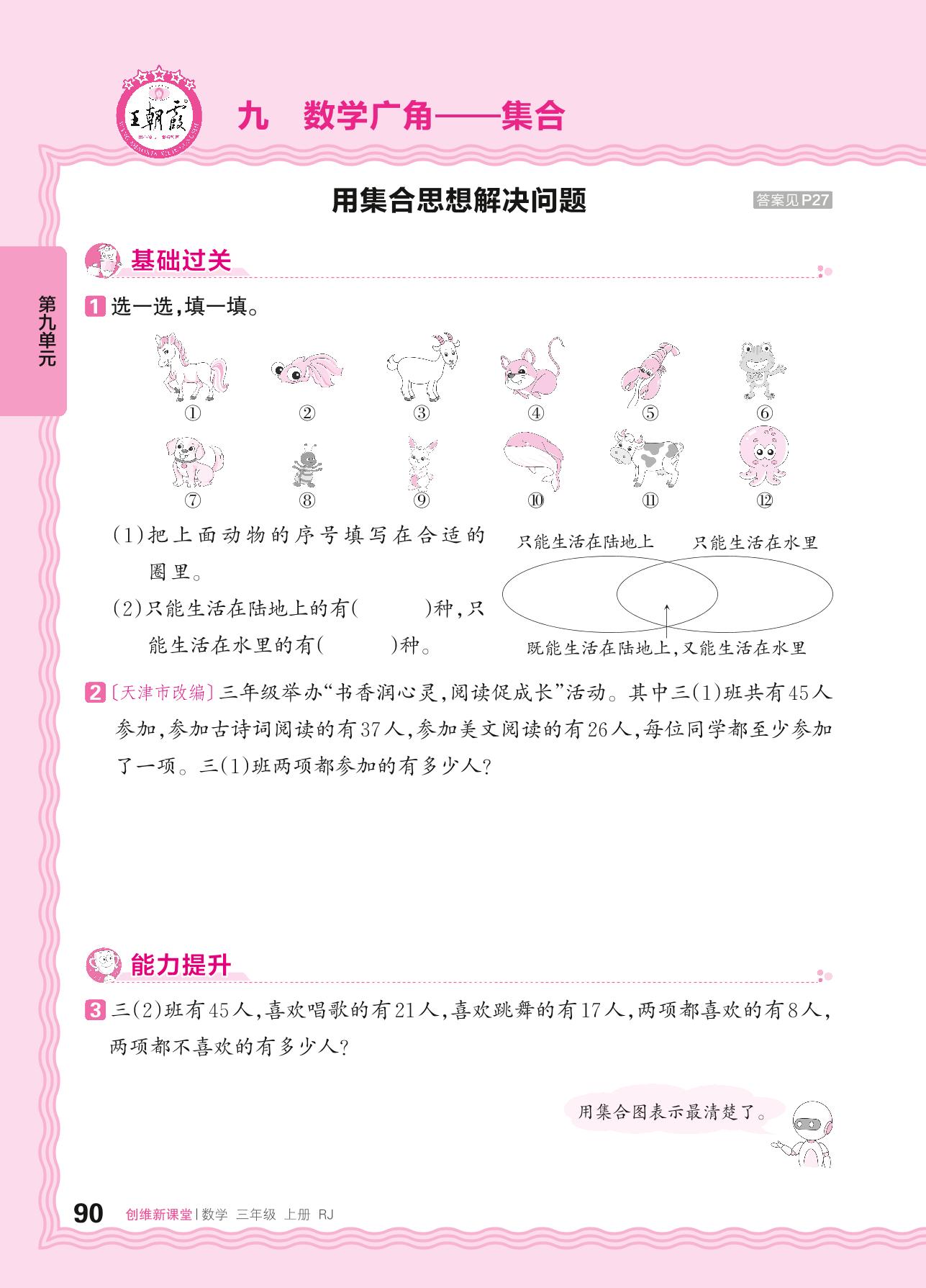 2024秋上册三年级数学人教版 第九单元 数学广角 集合——用集合思想解决问题
