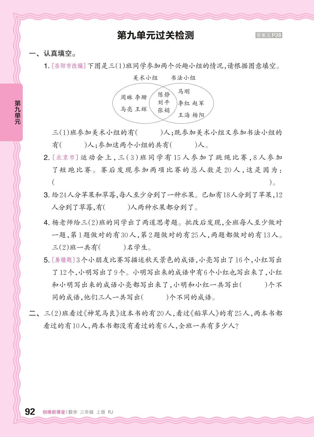三年级数学人教版上册单元卷