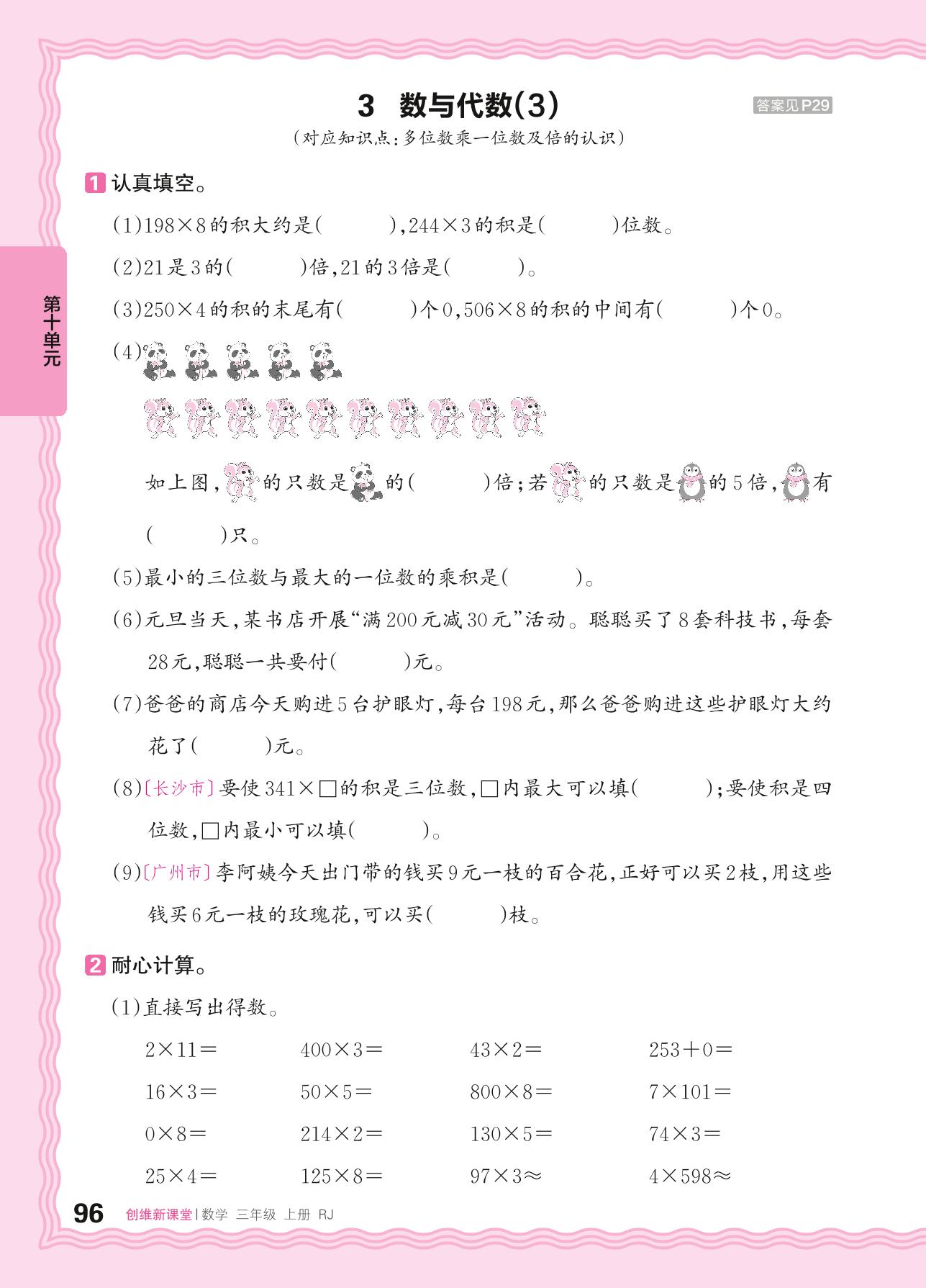 2024秋上册三年级数学人教版 第十单元 总复习——3. 数与代数(3)_R240816171302103