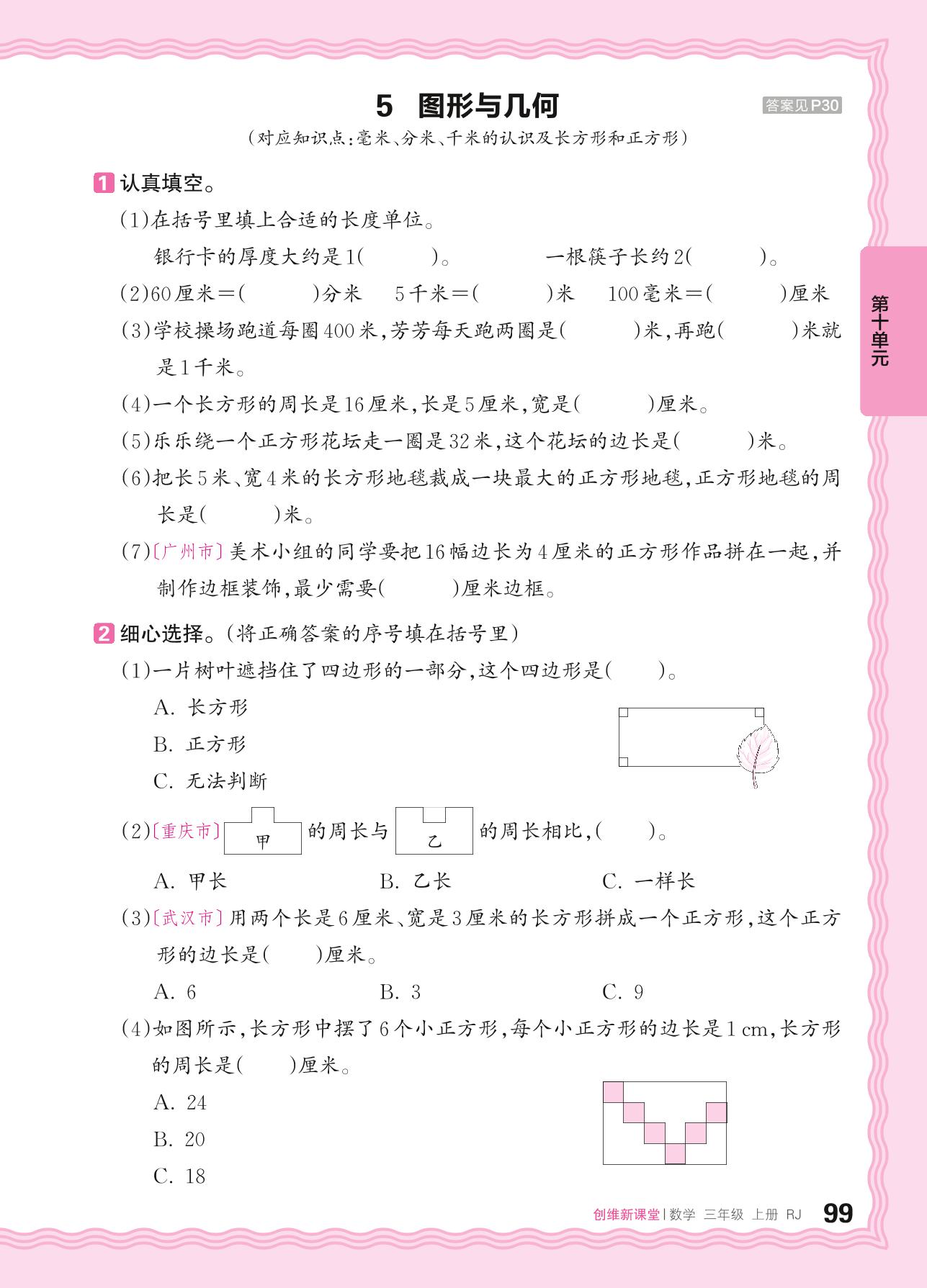 2024秋上册三年级数学人教版 第十单元 总复习——5. 图形与几何_R240816171303547