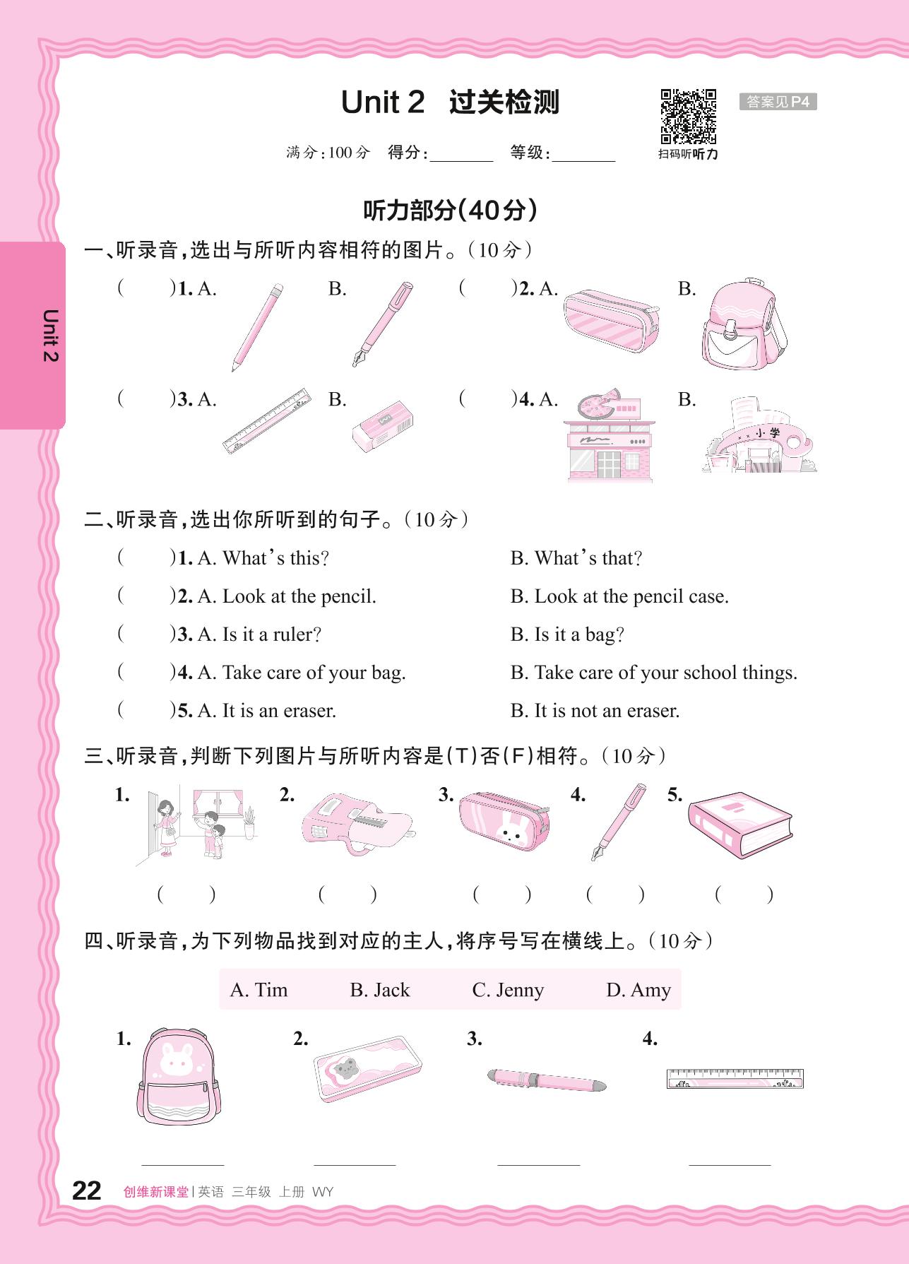 2024秋上册三年级英语外研版(三起始) Unit 2 过关检测