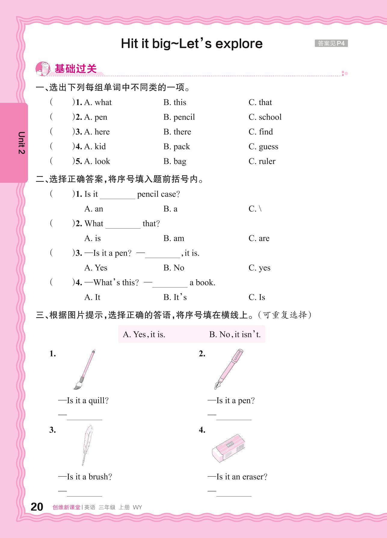 三年级英语外研版(三起始)(2024)上册课时作业