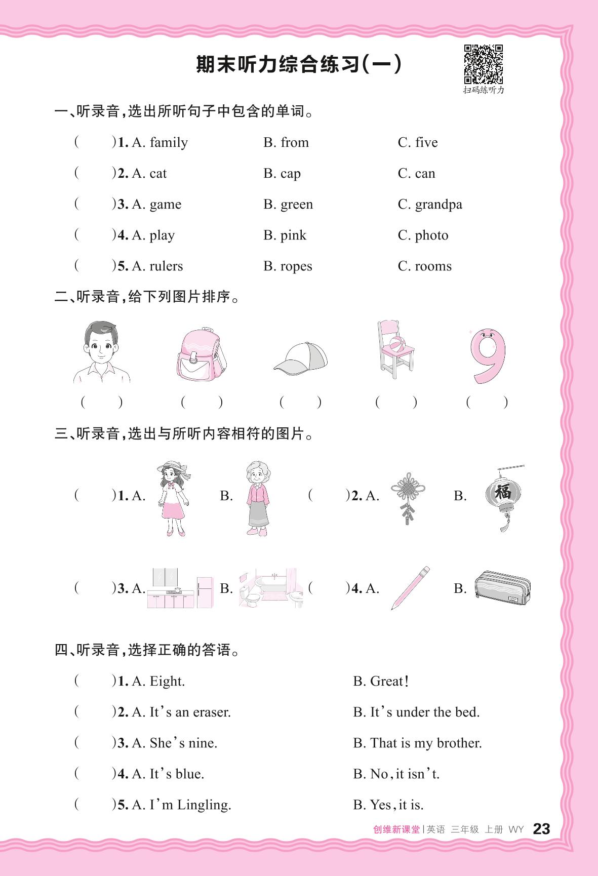 2024秋上册三年级英语外研版(三起始) 期末听力综合练习(一)