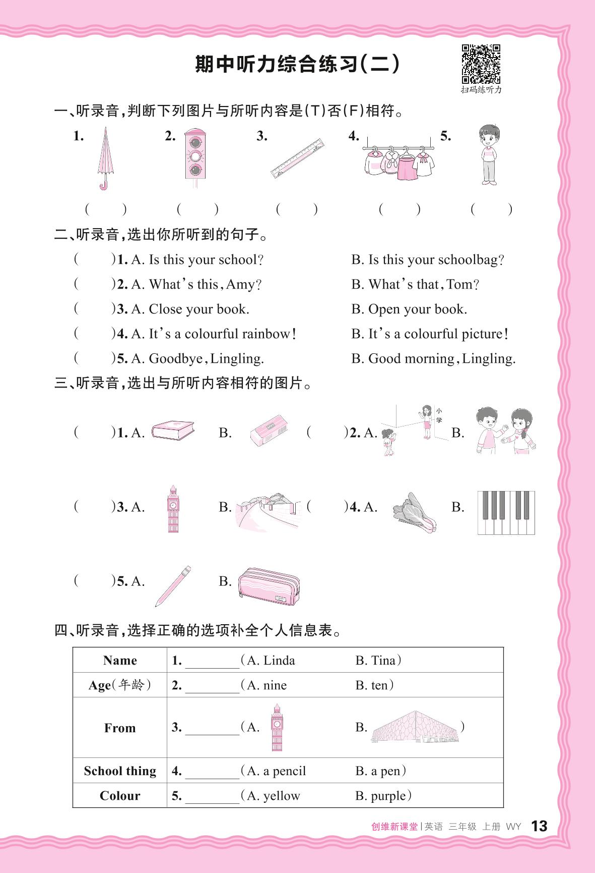 2024秋上册三年级英语外研版(三起始) 期中听力综合练习(二)
