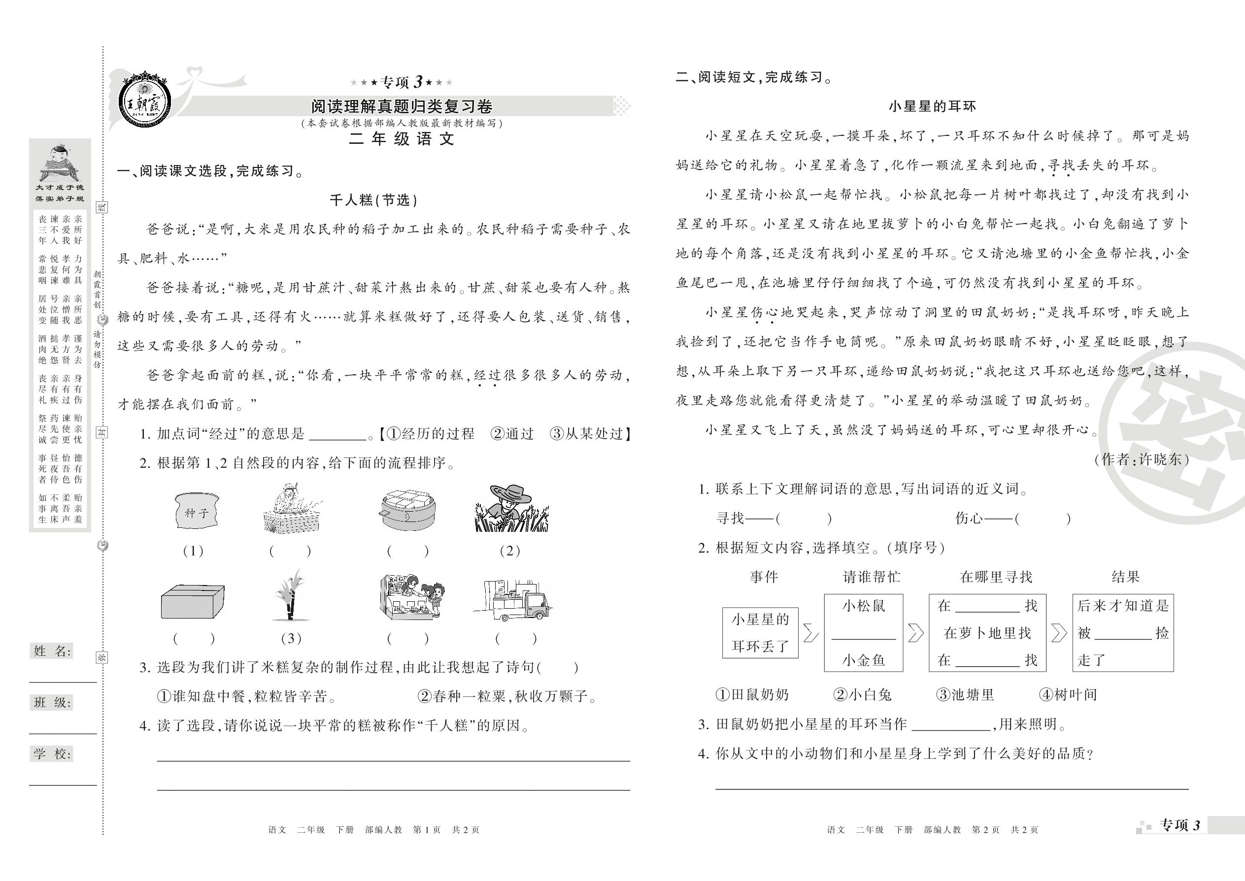 王朝霞期末专项卷——阅读理解、写话真题归类复习卷二年级下册语文(人教版)_R21080170432【0】