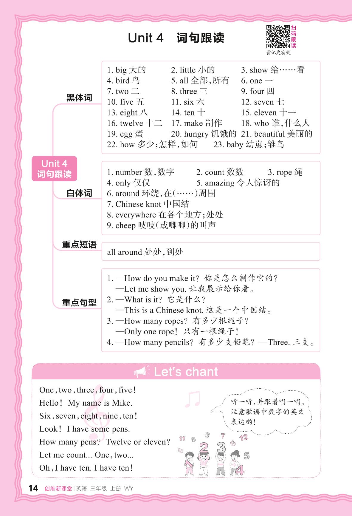 2024秋上册三年级英语外研版(三起始) Unit 4 词句跟读