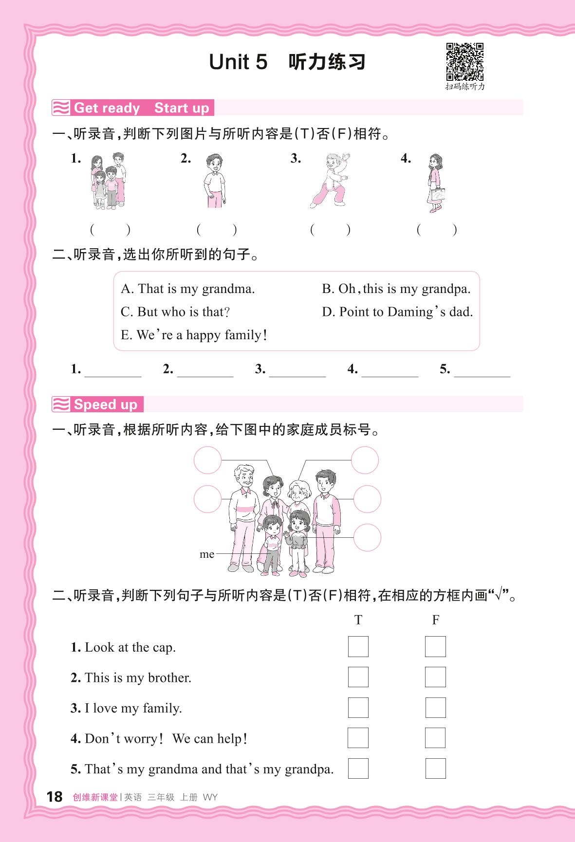 2024秋上册三年级英语外研版(三起始) Unit 5 听力练习