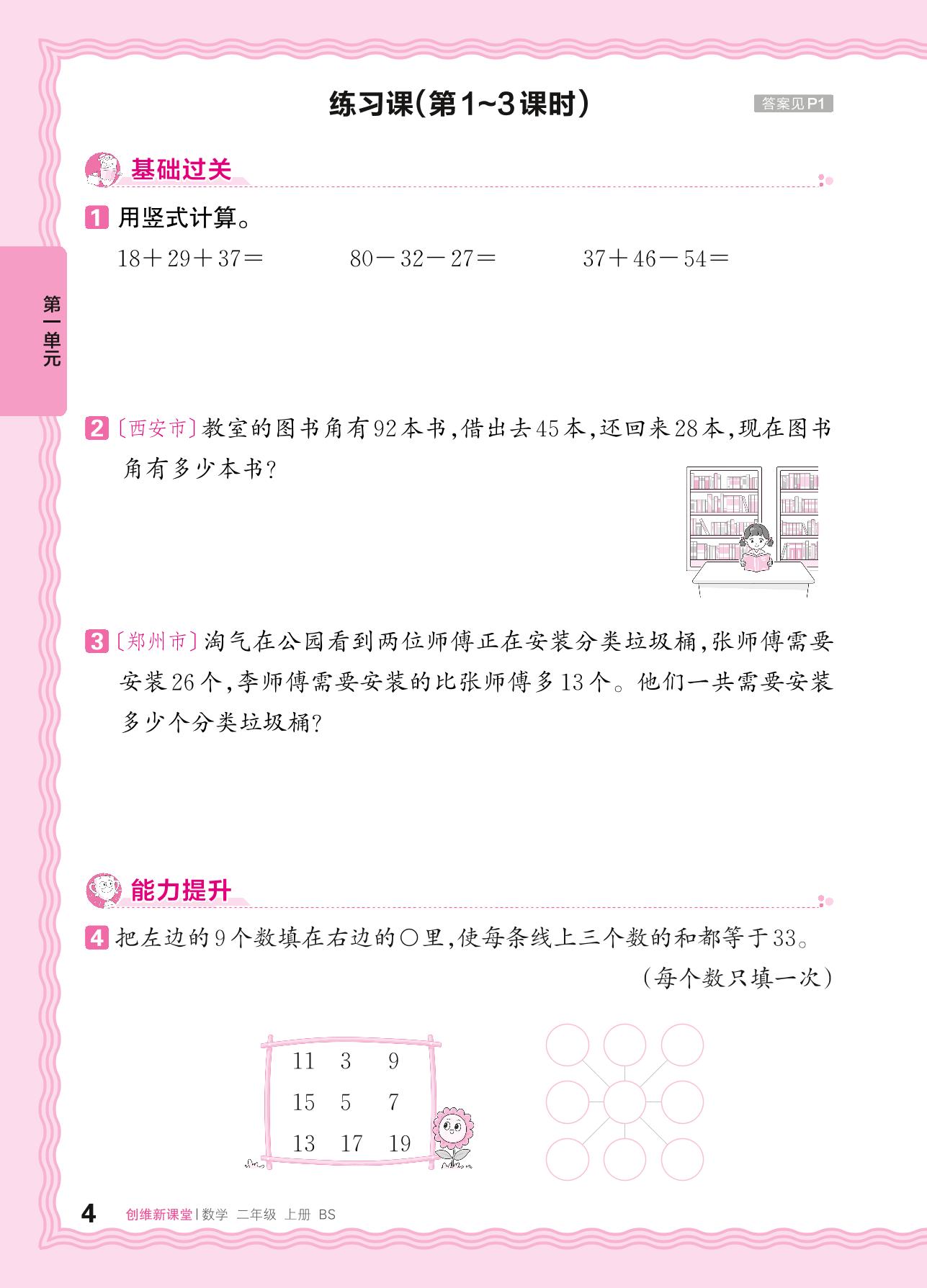 2024秋上册二年级数学北师版 第一单元 加与减练习课