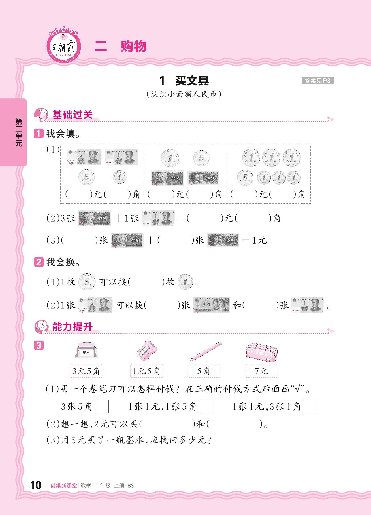 2024秋上册二年级数学北师版 第二单元 购物——1. 买文具