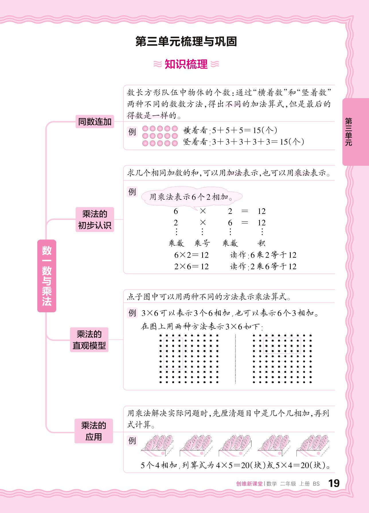 2024秋上册二年级数学北师版 第三单元梳理与巩固