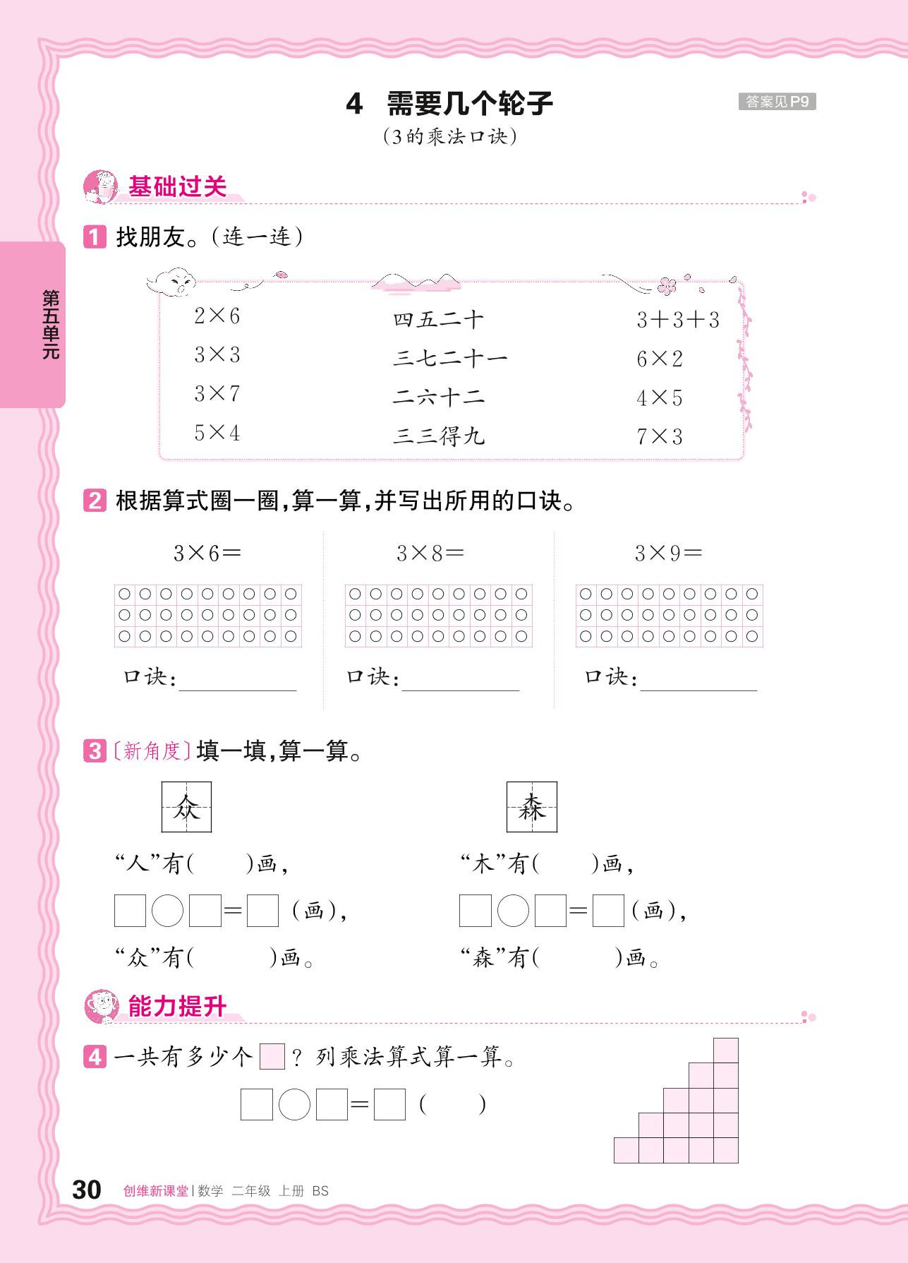 2024秋上册二年级数学北师版 第五单元 2~5的乘法口诀——4. 需要几个轮子