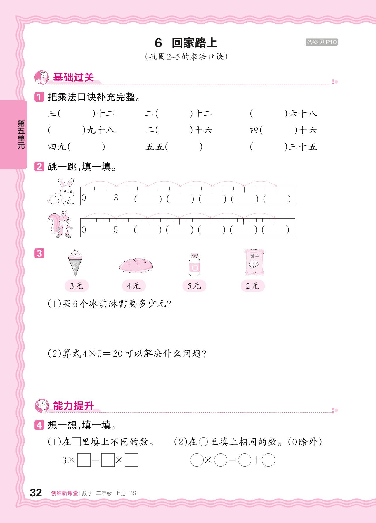 2024秋上册二年级数学北师版 第五单元 2~5的乘法口诀——6. 回家路上