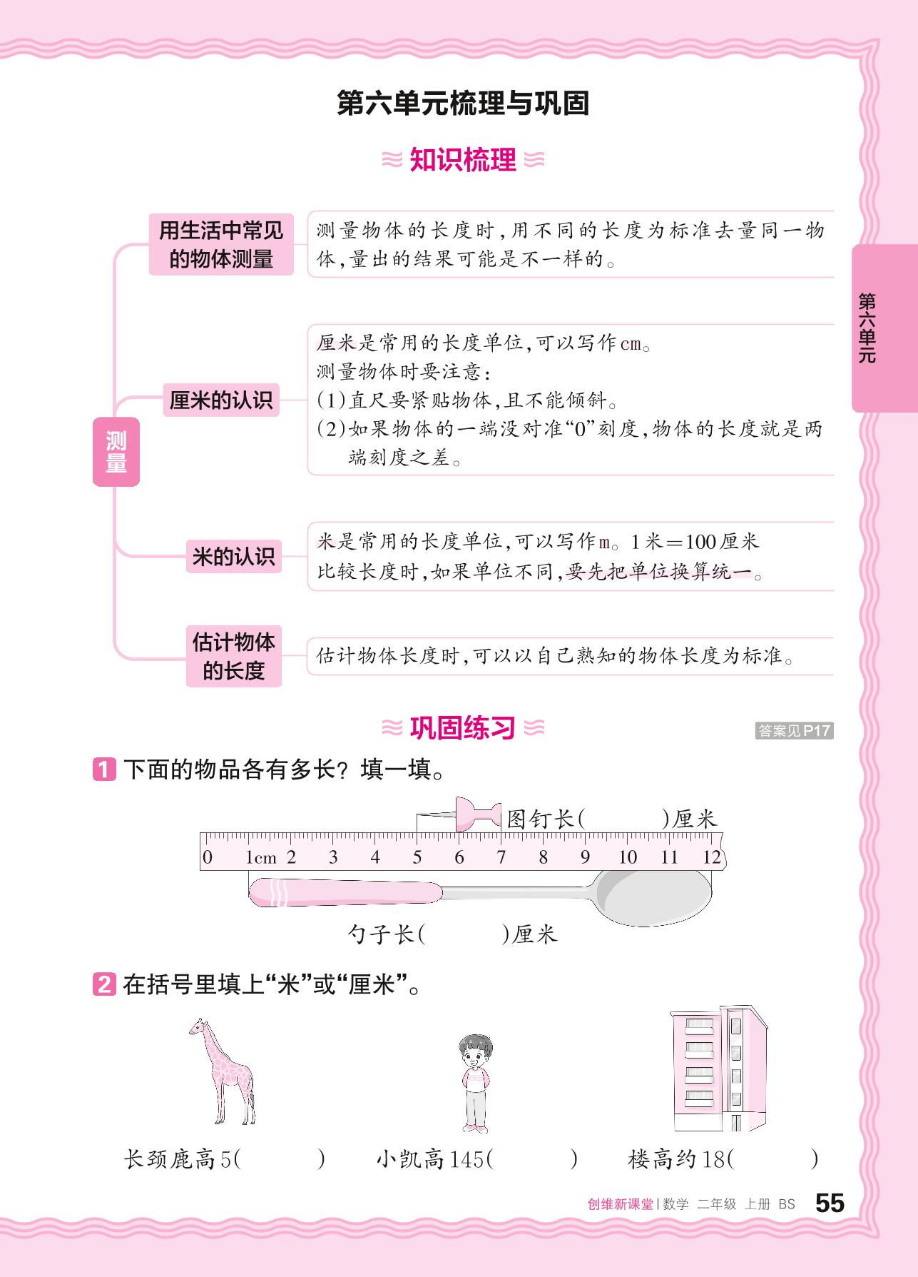 2024秋上册二年级数学北师版 第六单元梳理与巩固