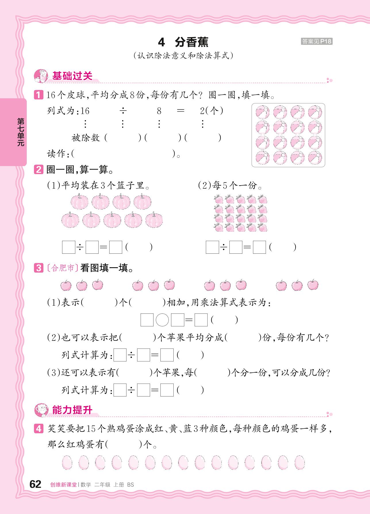 2024秋上册二年级数学北师版 第七单元 分一分与除法——4. 分香蕉
