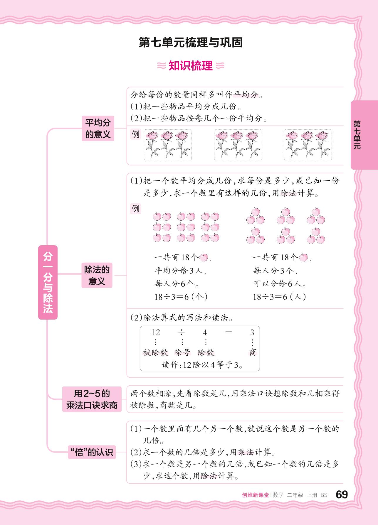 2024秋上册二年级数学北师版 第七单元梳理与巩固