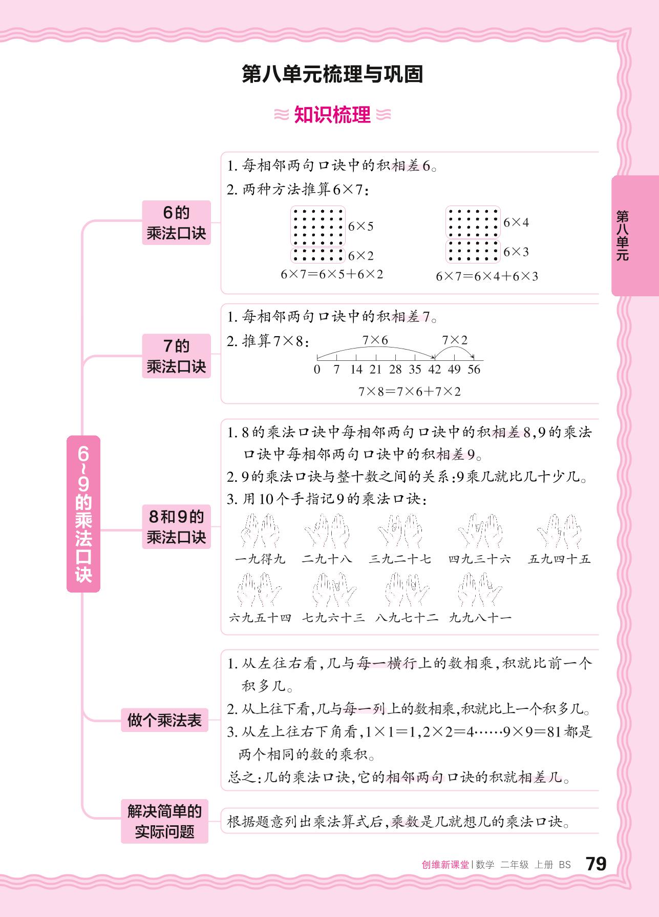 2024秋上册二年级数学北师版 第八单元梳理与巩固