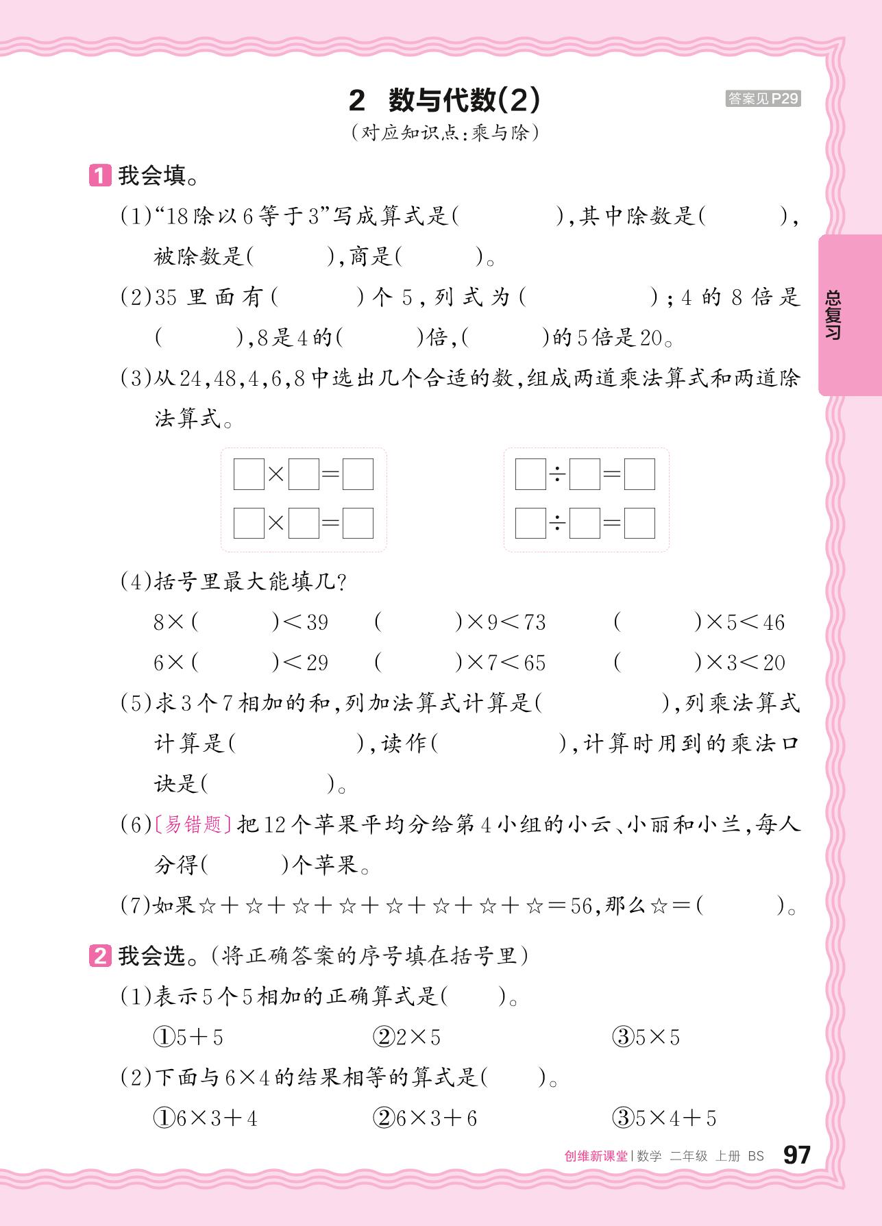 2024秋上册二年级数学北师版 总复习——2. 数与代数(2)