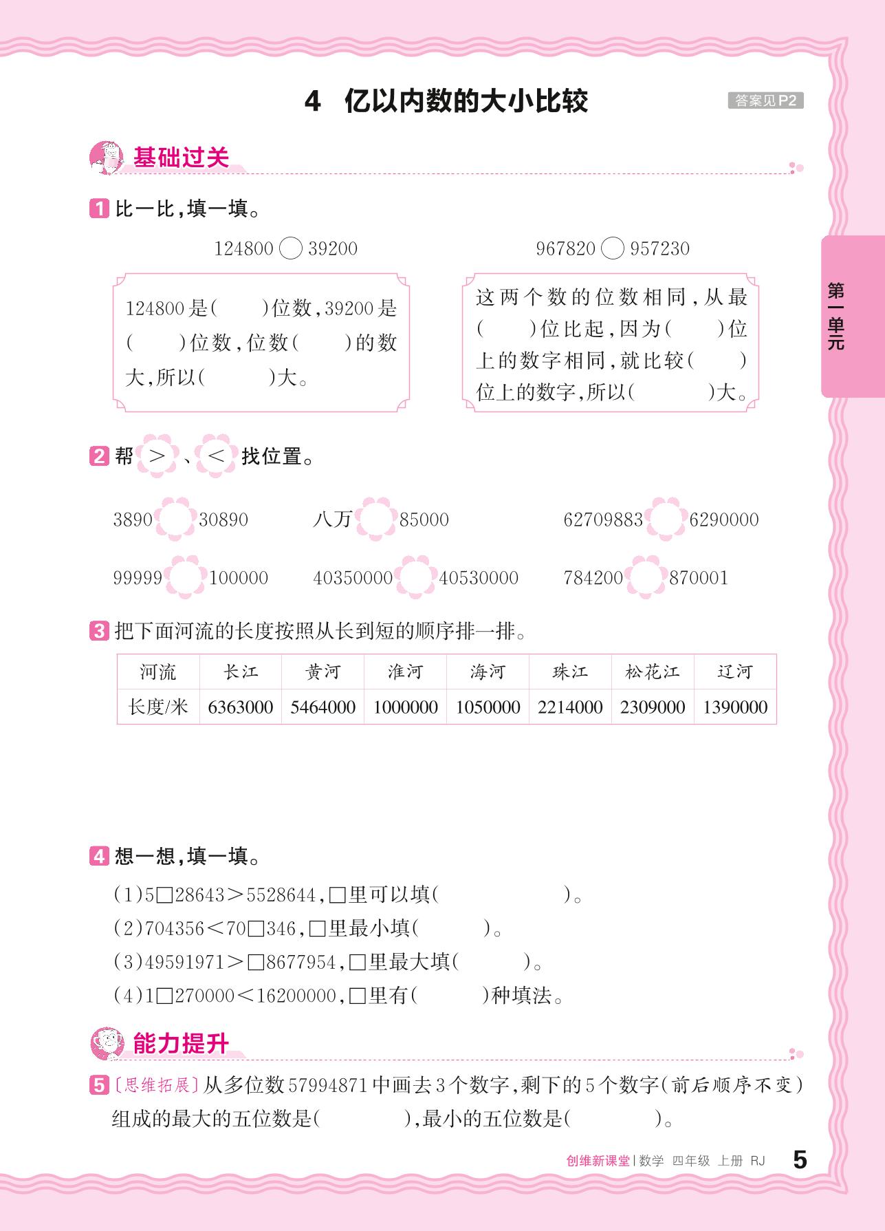 2024秋上册四年级数学人教版 第一单元 大数的认识 ——4. 亿以内数的大小比较