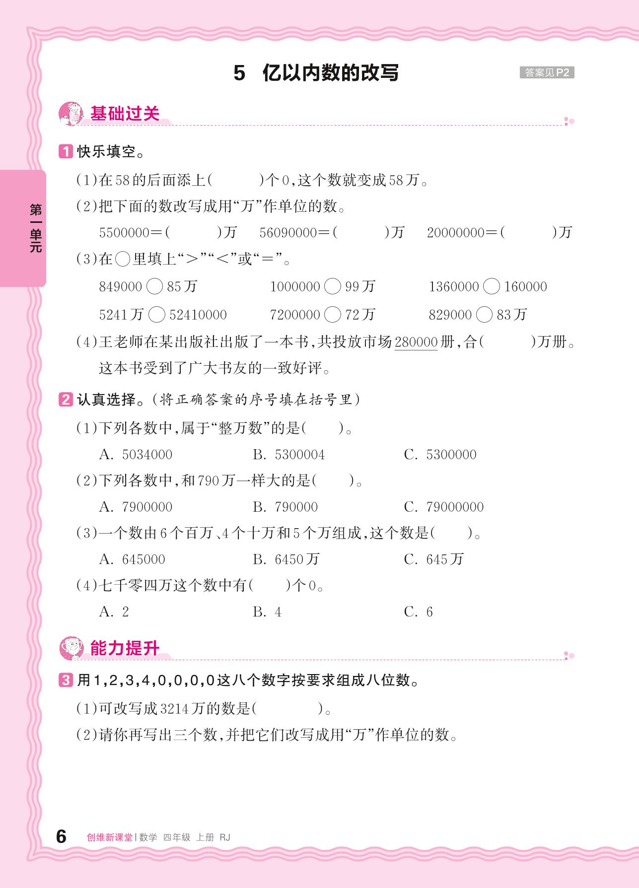 2024秋上册四年级数学人教版 第一单元 大数的认识 ——5. 亿以内数的改写