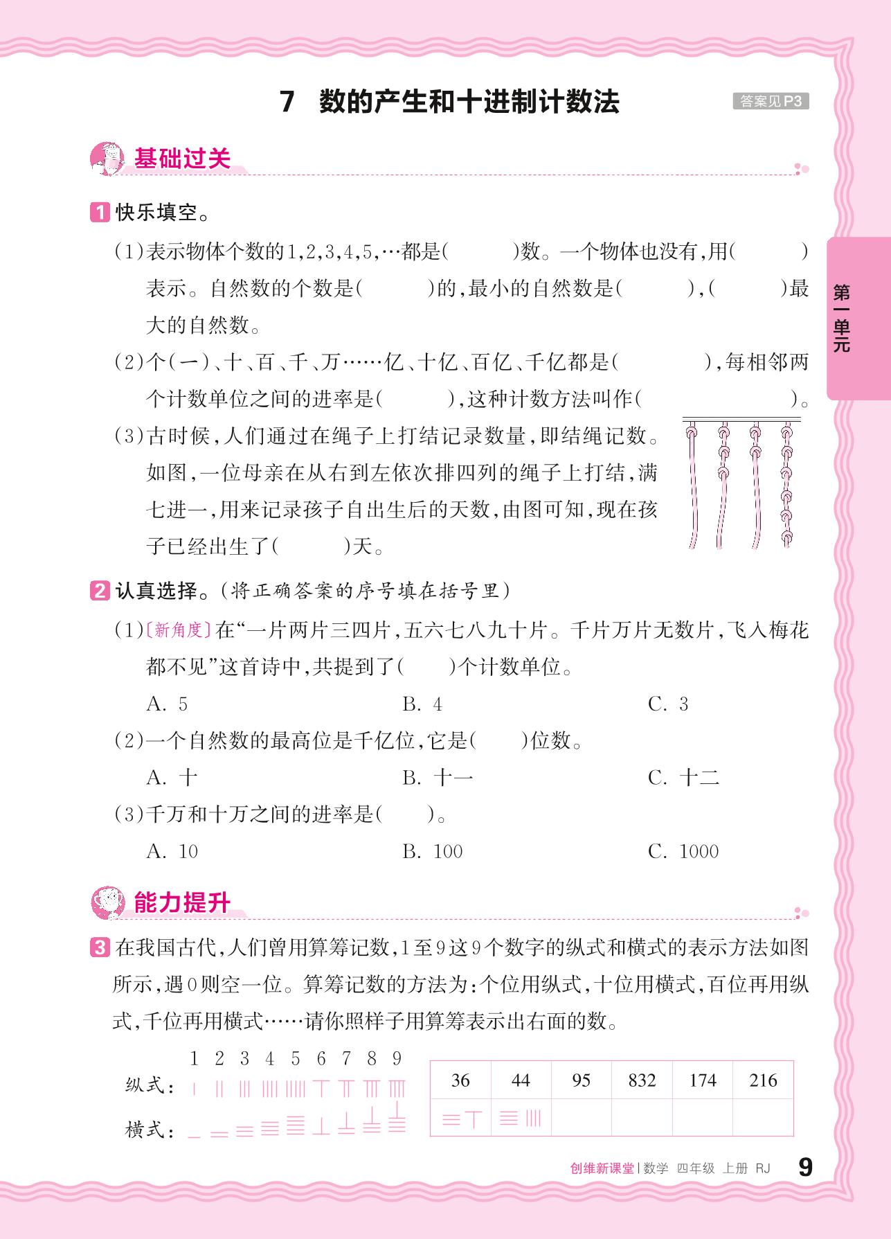 2024秋上册四年级数学人教版 第一单元 大数的认识 ——7. 数的产生和十进制计数法