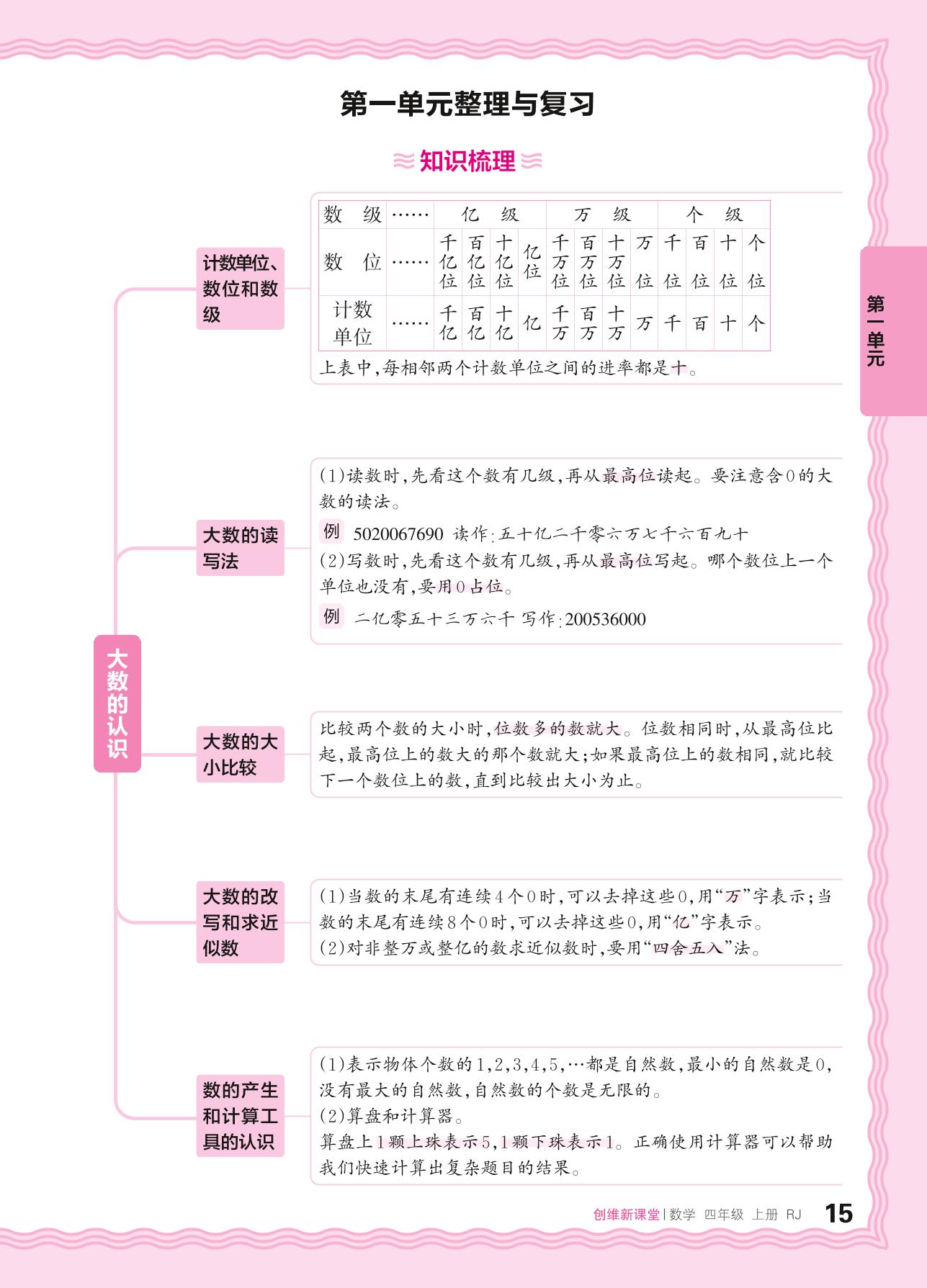 2024秋上册四年级数学人教版 第一单元整理与复习