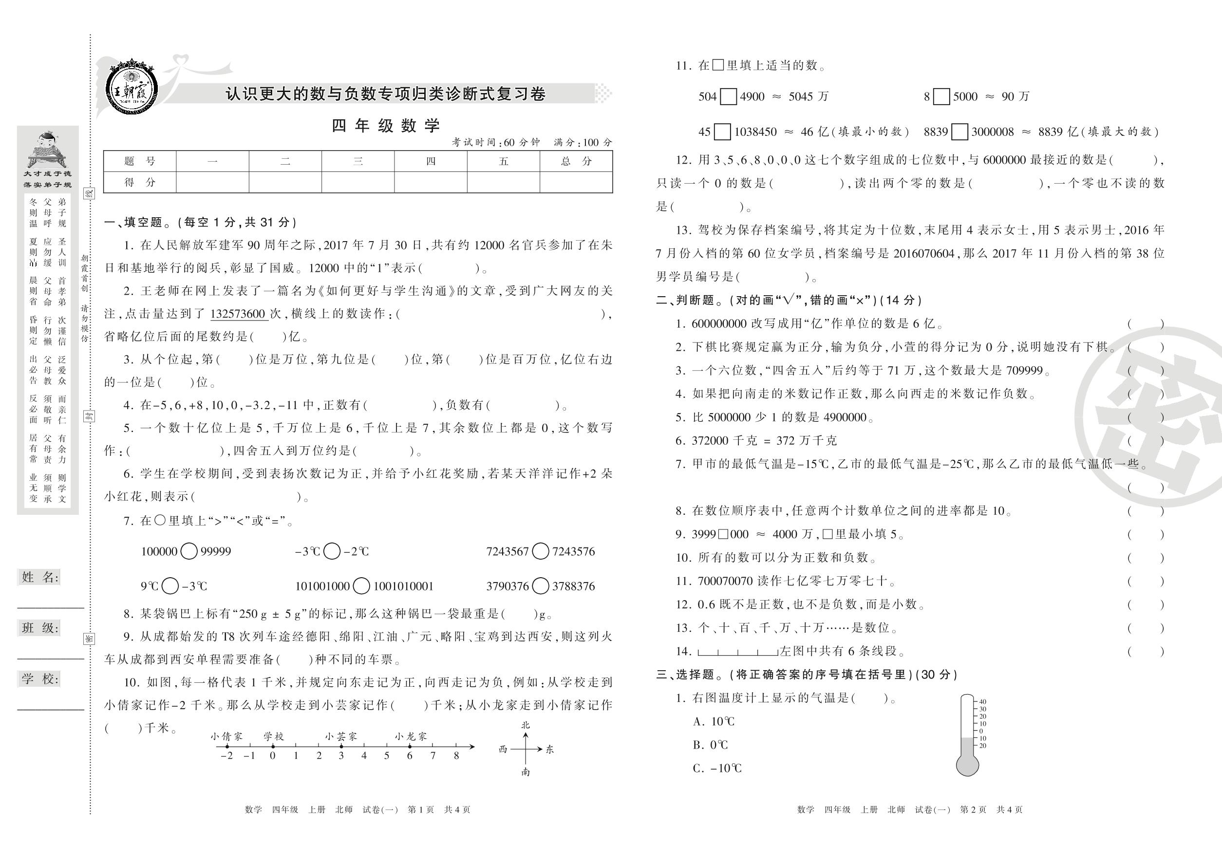 四年级数学北师版上册专项卷