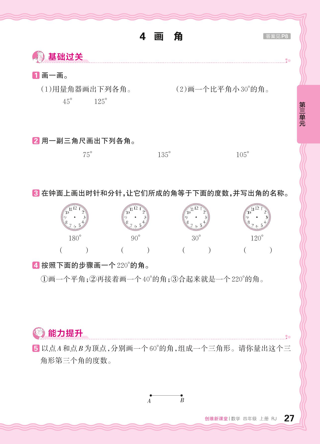 2024秋上册四年级数学人教版 第三单元 角的度量——4. 画角