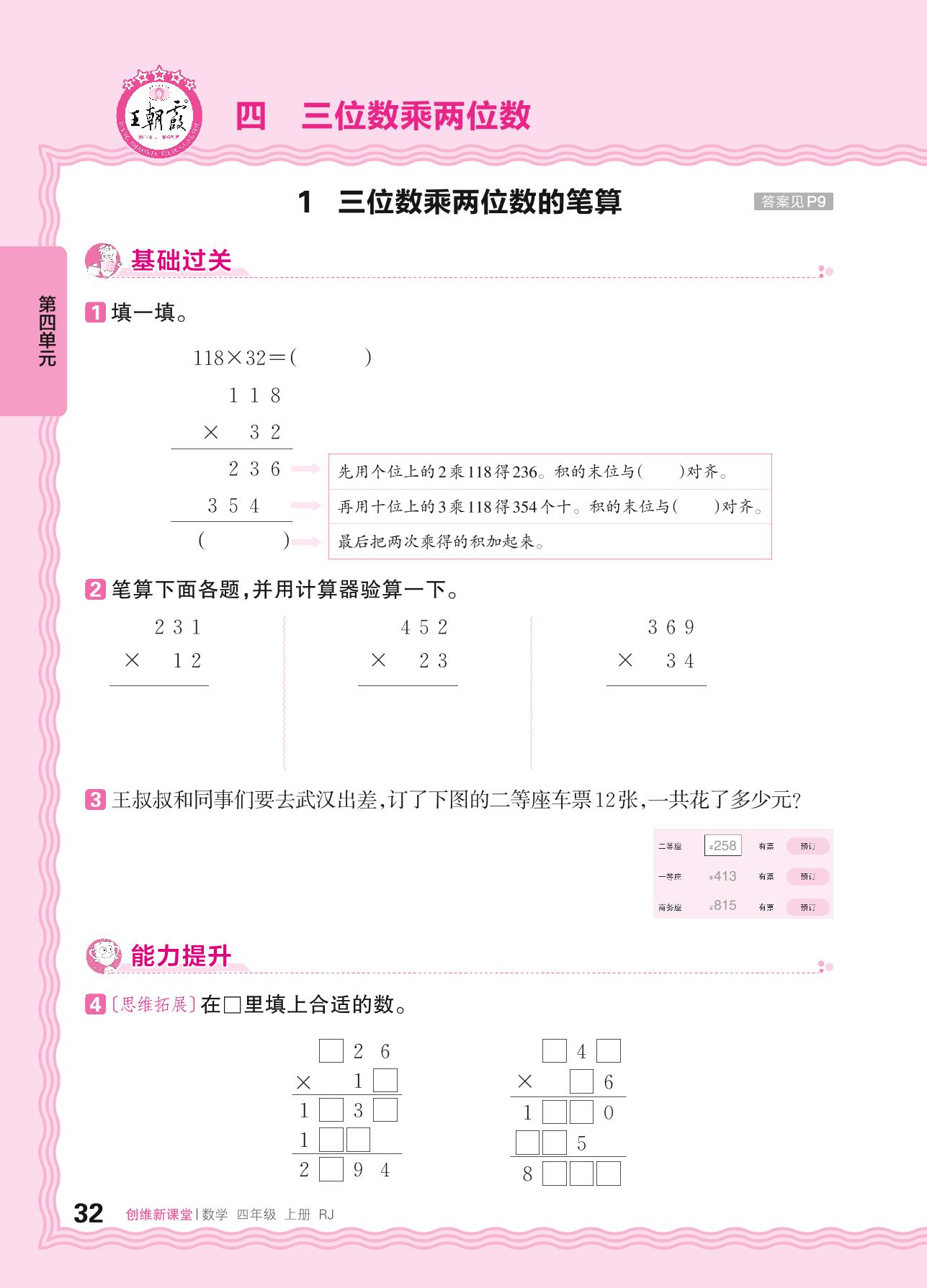 2024秋上册四年级数学人教版 第四单元 三位数乘两位数——1. 三位数乘两位数的笔算