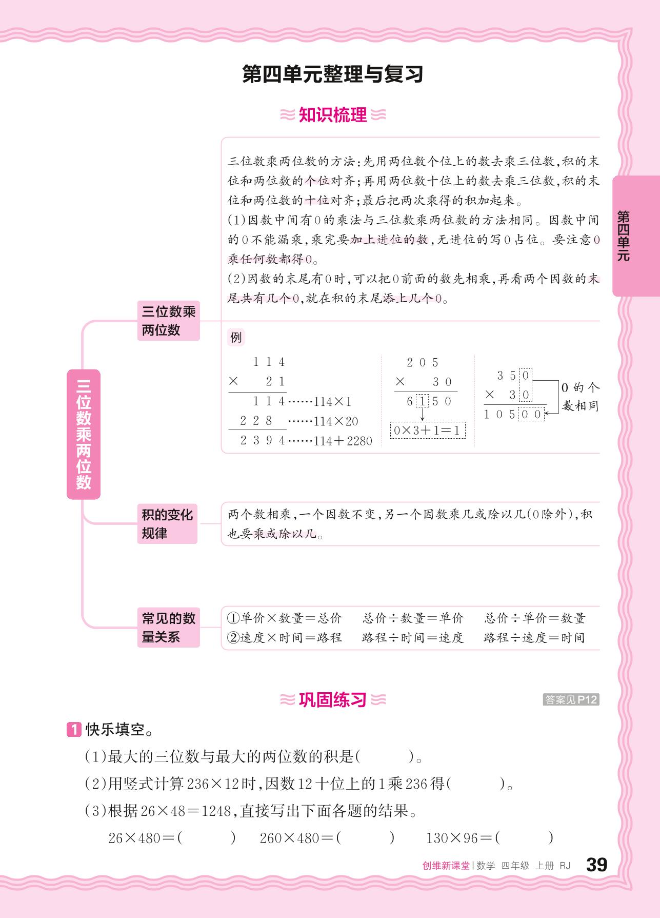 2024秋上册四年级数学人教版 第四单元整理与复习