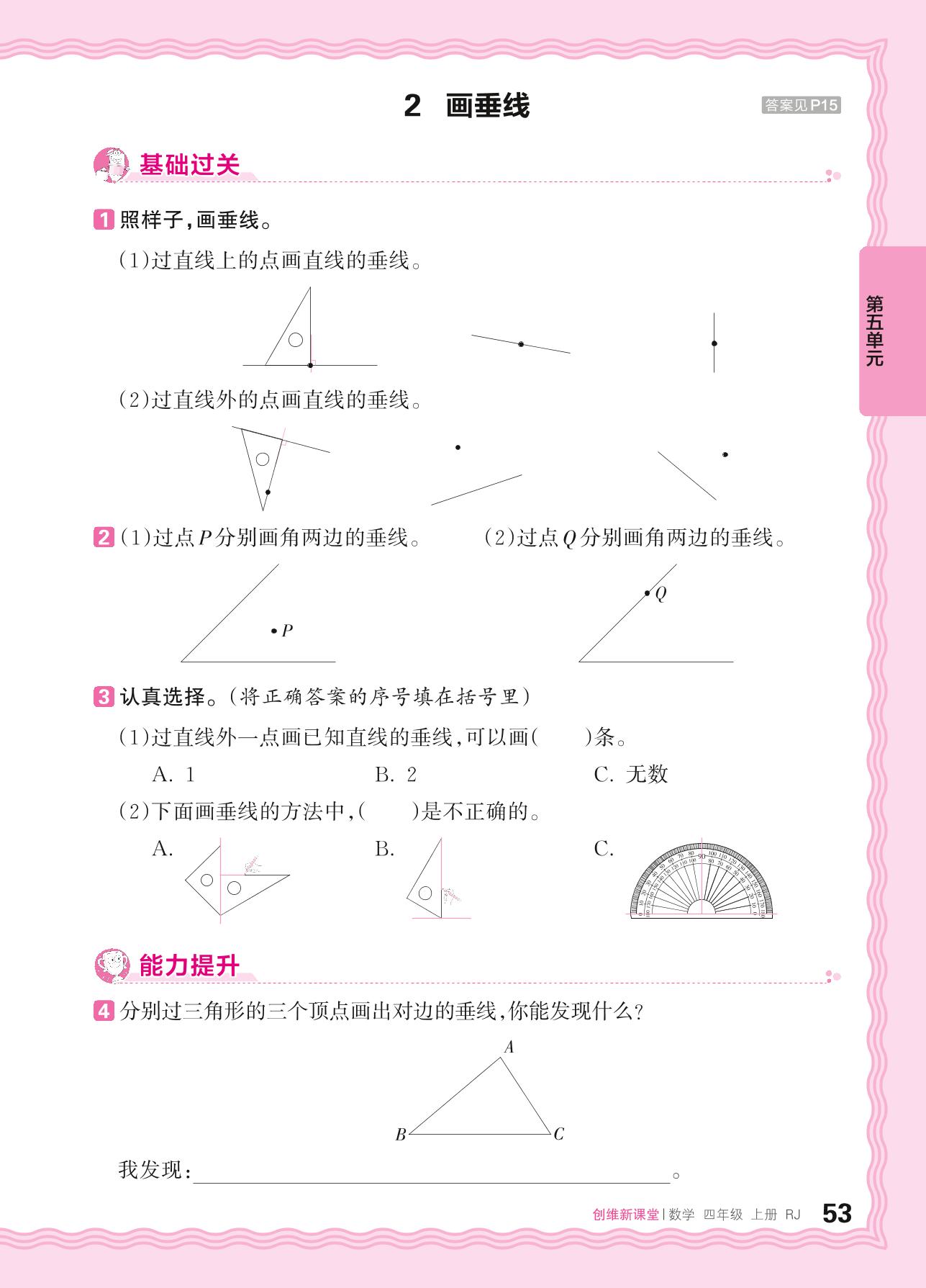 2024秋上册四年级数学人教版 第五单元 平行四边形和梯形——2. 画垂线