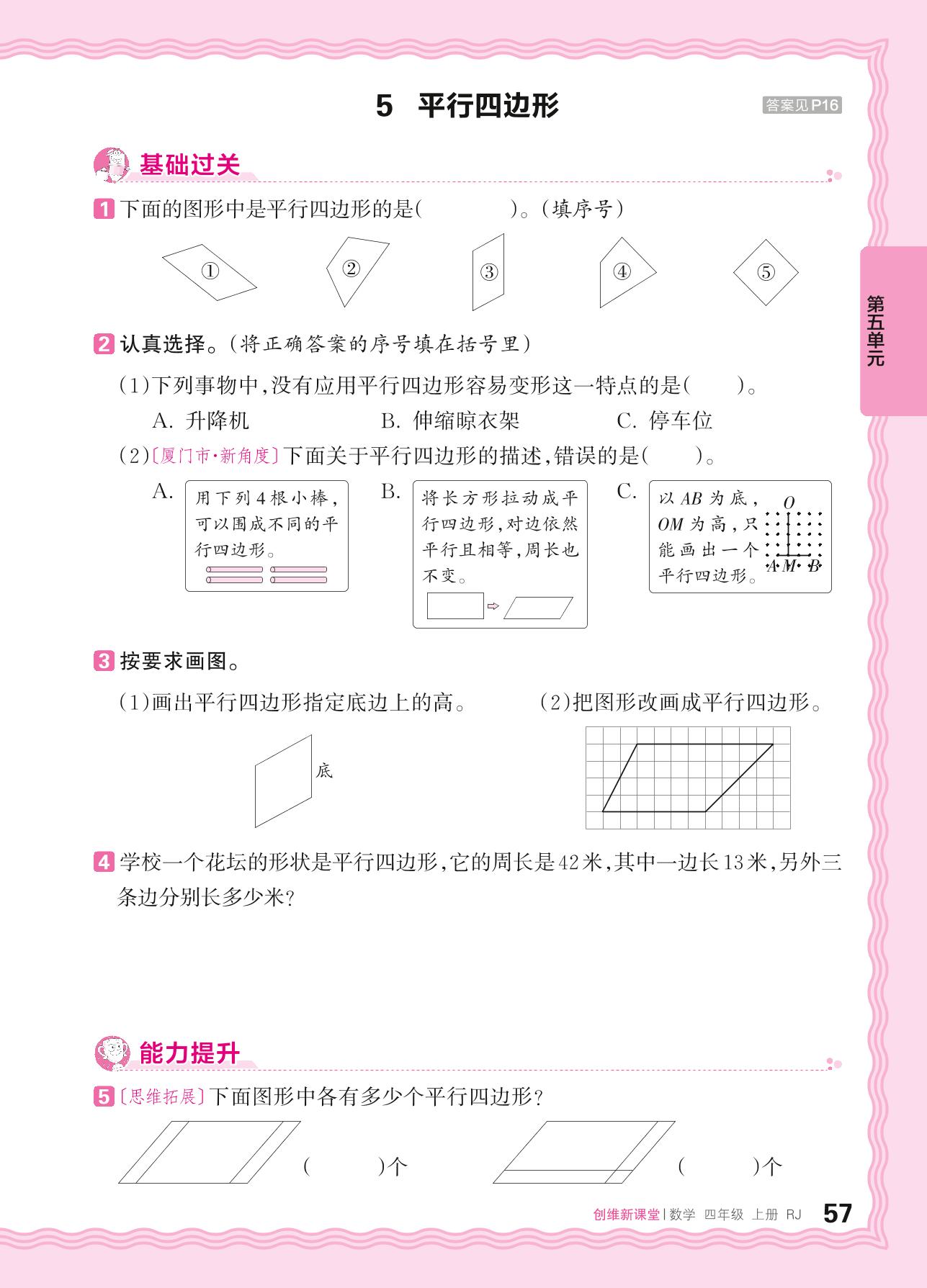 2024秋上册四年级数学人教版 第五单元 平行四边形和梯形——5. 平行四边形