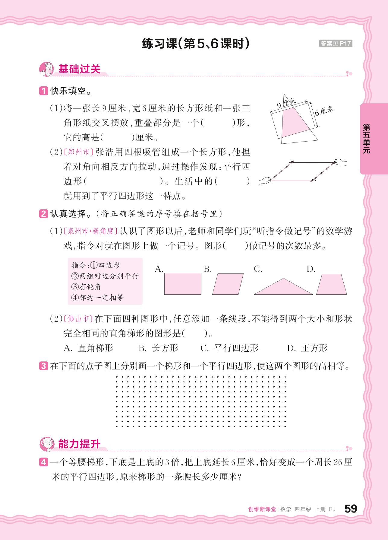 2024秋上册四年级数学人教版 第五单元 平行四边形和梯形——平行四边形、梯形及四边形之间的关系练习课