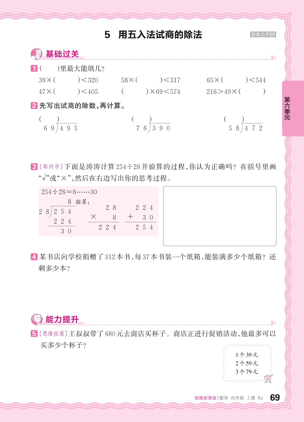 2024秋上册四年级数学人教版 第六单元 除数是两位数的除法——5. 用五入法试商的除法