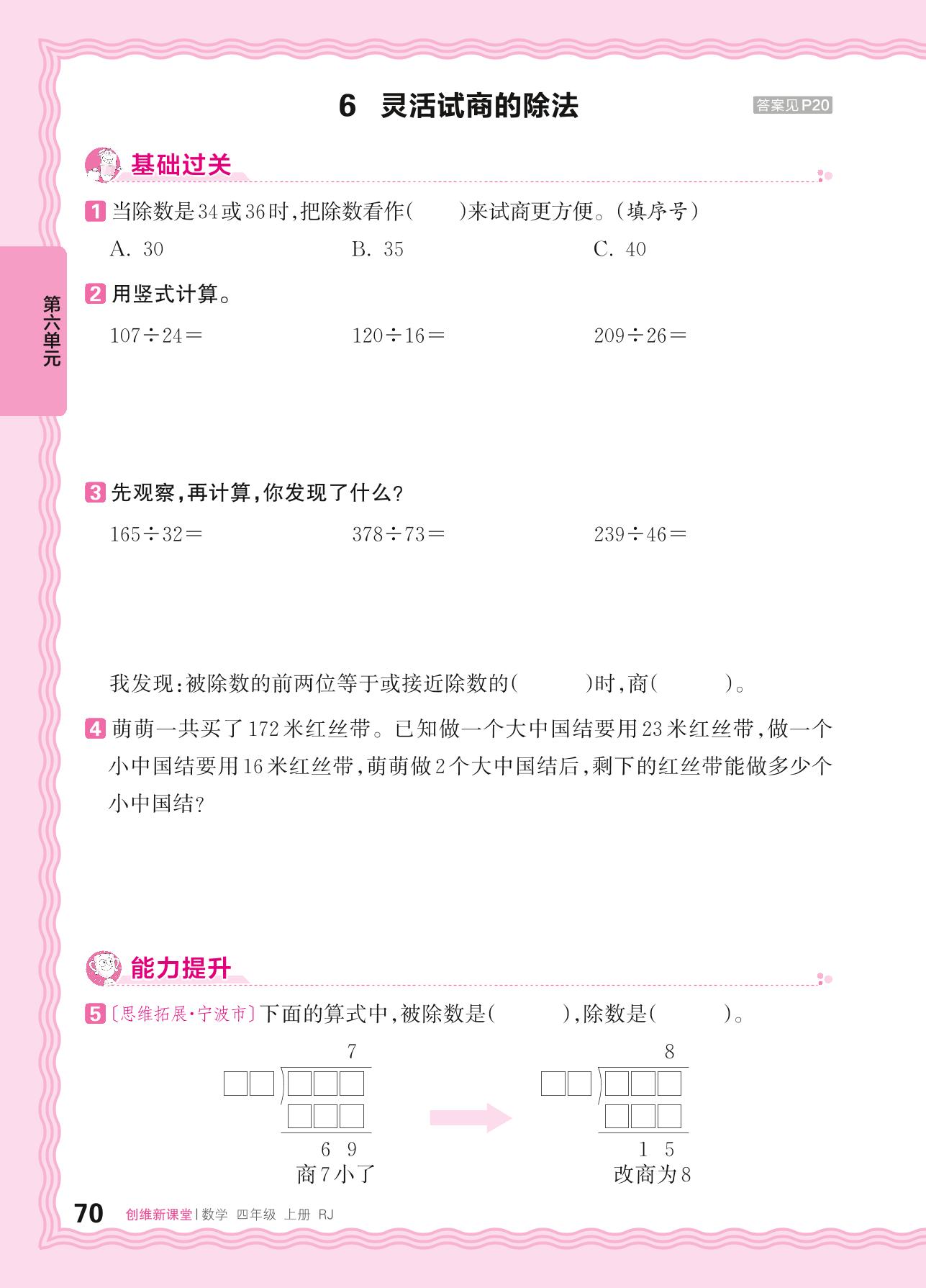 2024秋上册四年级数学人教版 第六单元 除数是两位数的除法——6. 灵活试商的除法