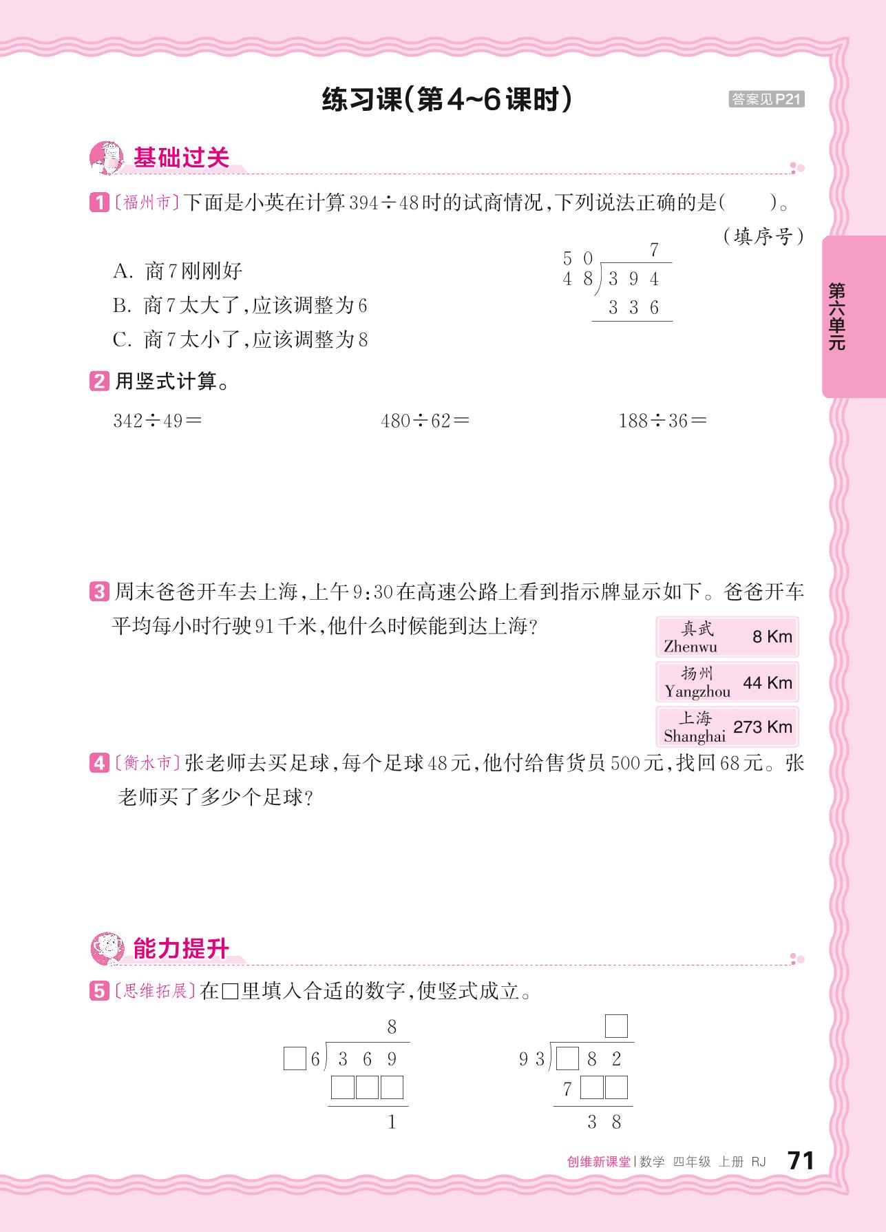 2024秋上册四年级数学人教版 第六单元 除数是两位数的除法——除数是整十数的除法、试商除法练习课